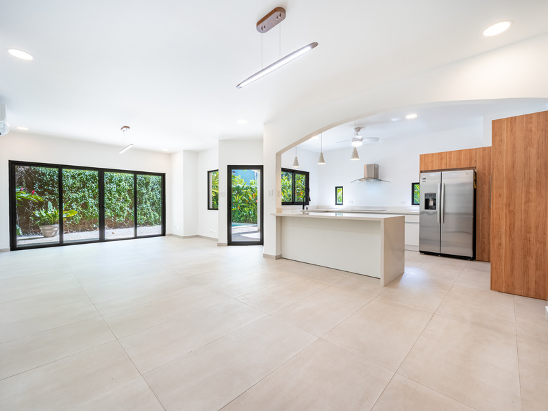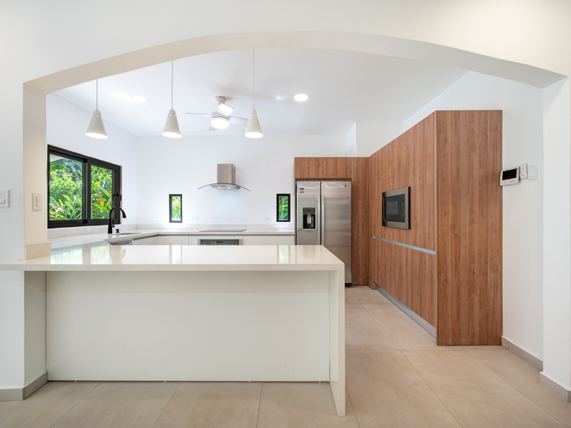 This elegant home located in Surfside, Potrero, features four bedrooms and three bathrooms, perfectly combining style, comfort, and practicality. Its open-concept design includes high ceilings, soundproof windows, and sophisticated finishes throughout the space. The kitchen is outfitted with Euromobilia cabinetry, Calacatta Gold quartz countertops, and premium GE appliances, offering both beauty and functionality.