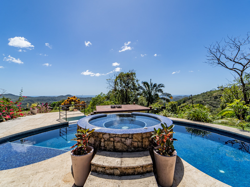 Casa Jardin is a breathtaking ocean-view executive home nestled in the mountains above Playa Samara and Playa Buena Vista, offering panoramic 180-degree views of the Pacific Ocean. These 2 properties together span over 3 acres within a gated community, ensuring security, peace, and privacy.