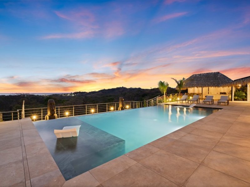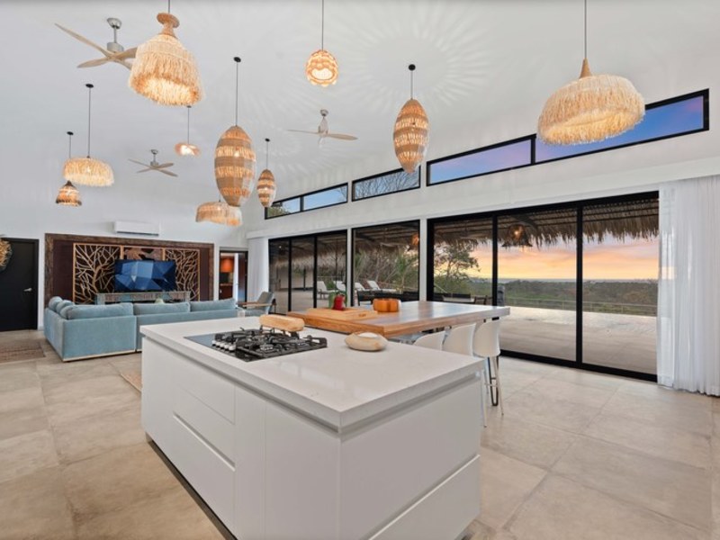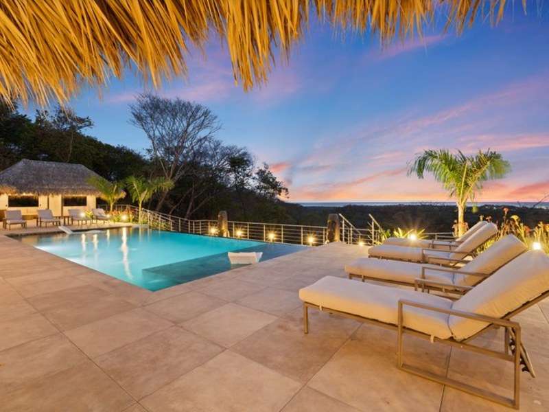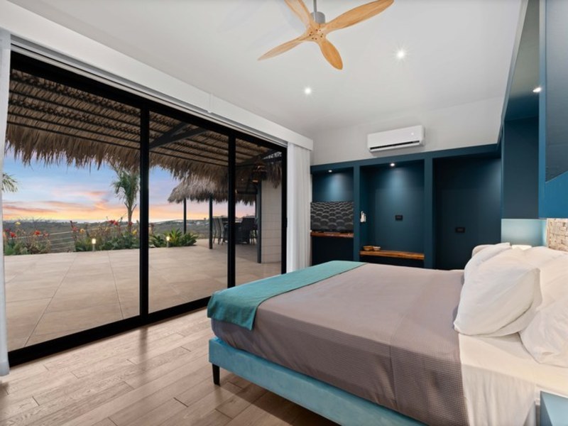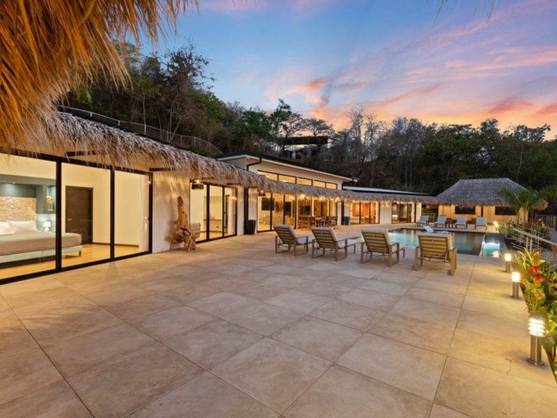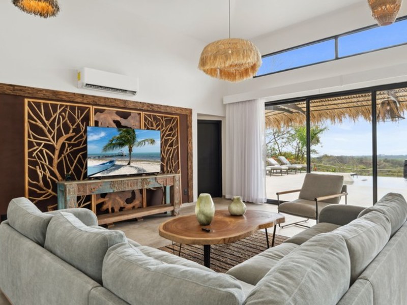 Welcome to Villa Calypso, a newly built, architect designed luxury estate perched on a 5,200 m² (1.25-acre) hilltop lot just four minutes from downtown Tamarindo. This stunning residence combines sophisticated European craftsmanship with panoramic views of the Pacific Ocean and surrounding mountains. Designed with durability and elegance in mind, the estate features four identical primary suites two of which are lockouts with private entrances offering both flexibility and exceptional rental potential. Expansive outdoor living spaces include a 500 m² Italian tiled terrace, a saltwater infinity pool and spa, two open air ranchos with a full outdoor kitchen, and lush landscaping throughout.