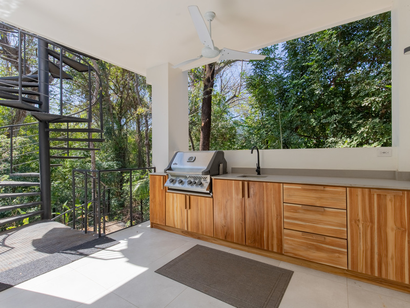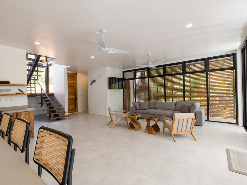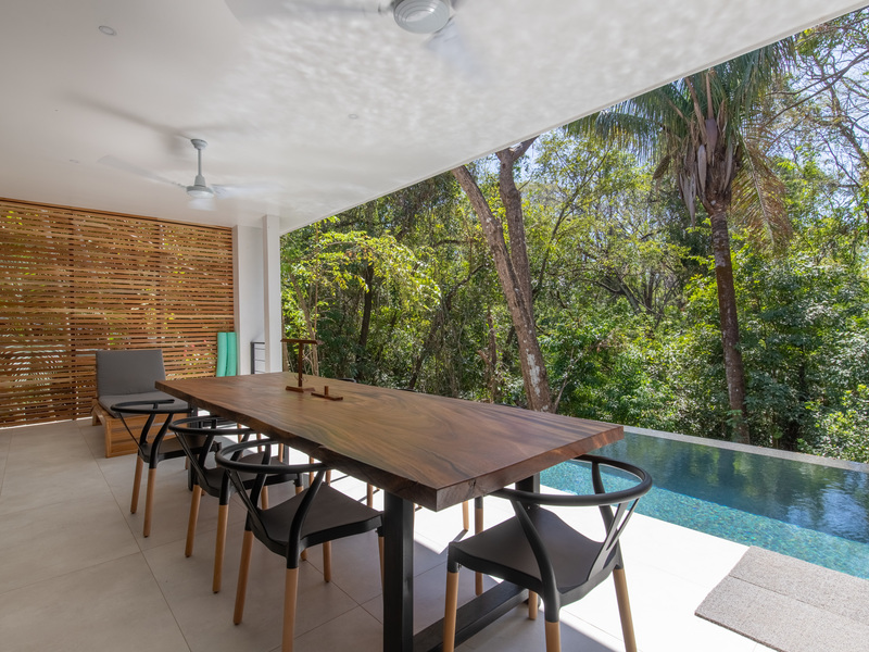 The top floor features an open-air studio space with panoramic views of the lush jungle canopy, making it an ideal setting for yoga sessions, wellness workshops, or creative gatherings. Whether you're planning a quiet getaway or a small group retreat, Casa Prana offers the perfect balance of tranquility and accessibility in one of Nosara’s most sought-after locations.