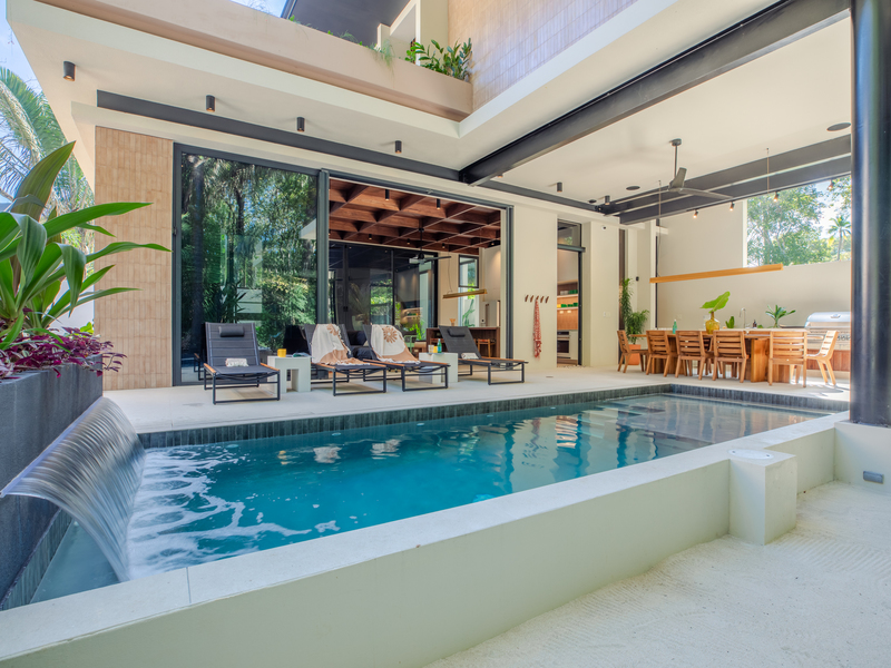 The house is located in North Guiones on the prestigious Calle Los Mangos, a quiet residential street. You will be just a short 5 min walk from Guiones Beach. From the house you have the Nalu fitness studio close by, multiple restaurants, cafes, shops, surf rentals, and clay tennis courts. This is the perfect location to come and enjoy your upcoming vacation at Guiones, Nosara.