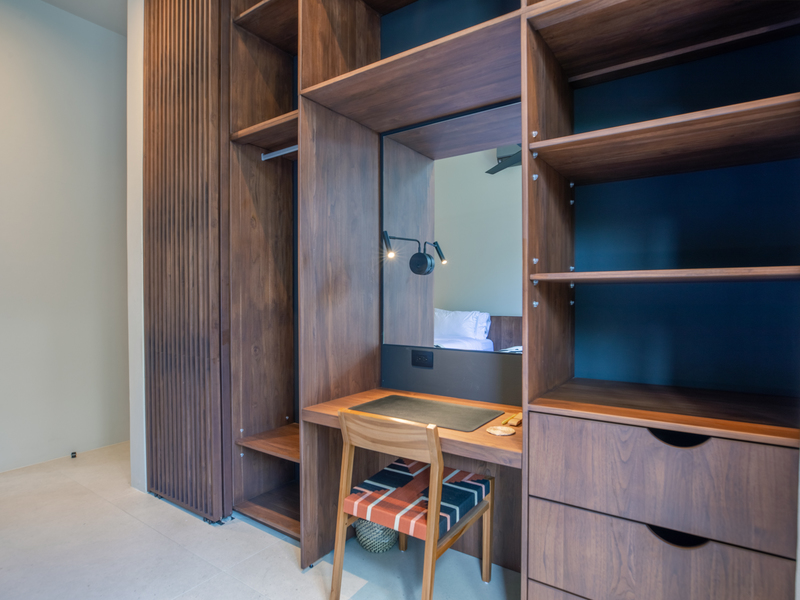 -Suite 03, 2nd Floor (sleeps 2); King bed or two twin beds, workspace, ensuite, large windows with lush planters, task and ambient lighting, A/C and fan and walkout to terrace