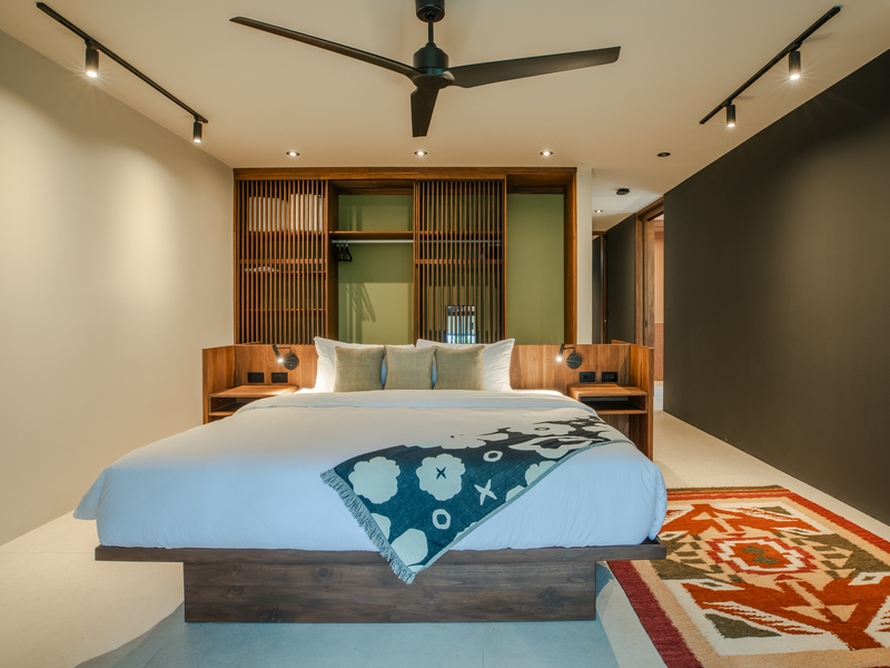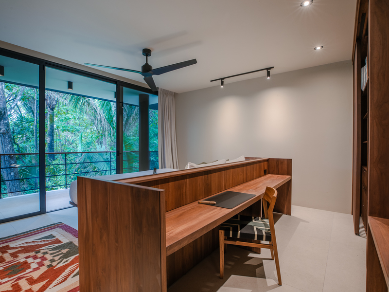 -Suite 02/Master, 2nd Floor (sleeps 2); King bed with jungle views, large custom closet, workspace, ensuite with toilet room, private jungle terrace, task and ambient lighting, A/C and fan.