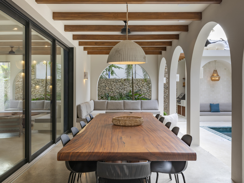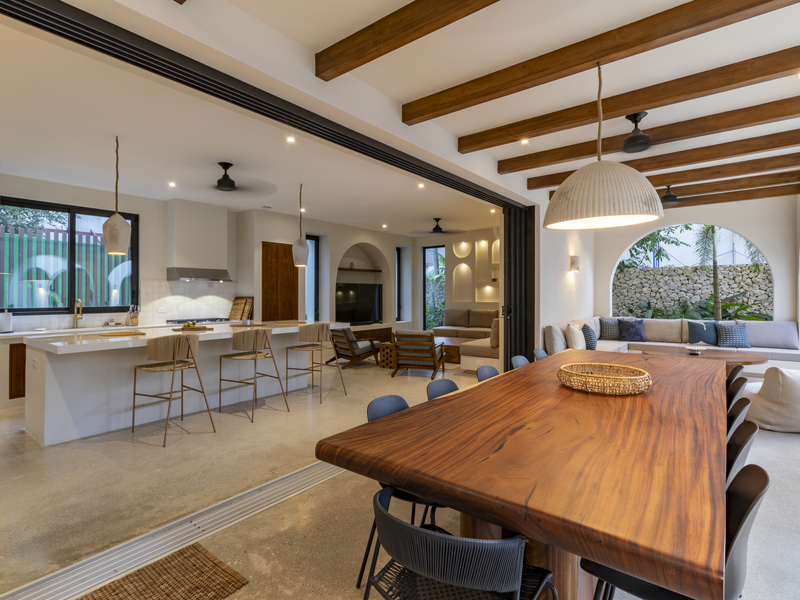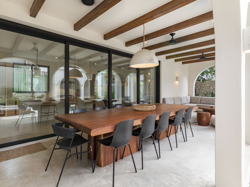 *Al Fresco Dining: Gather around the spectacular custom-made Guanacaste dining table, which comfortably seats twelve. Here, you can enjoy meals surrounded by the sounds of the jungle and the ambiance of your tropical surroundings, all while listening to your favorite music on the Sonos sound system.