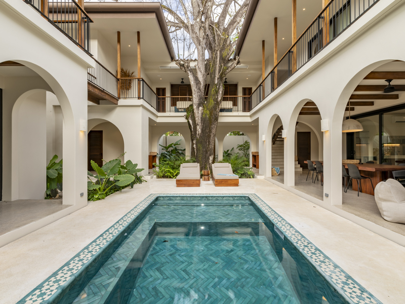 This gorgeous Mediterranean villa has been meticulously designed to submerge you in a luxurious indoor-outdoor living experience. The exquisite home features a Moroccan-inspired courtyard that serves as the heart of the villa, fostering a sense of connection while providing serene, private spaces for relaxation. With world class surfing beach Playa Guiones merely steps away, this villa offers the pinnacle of vacation experiences.