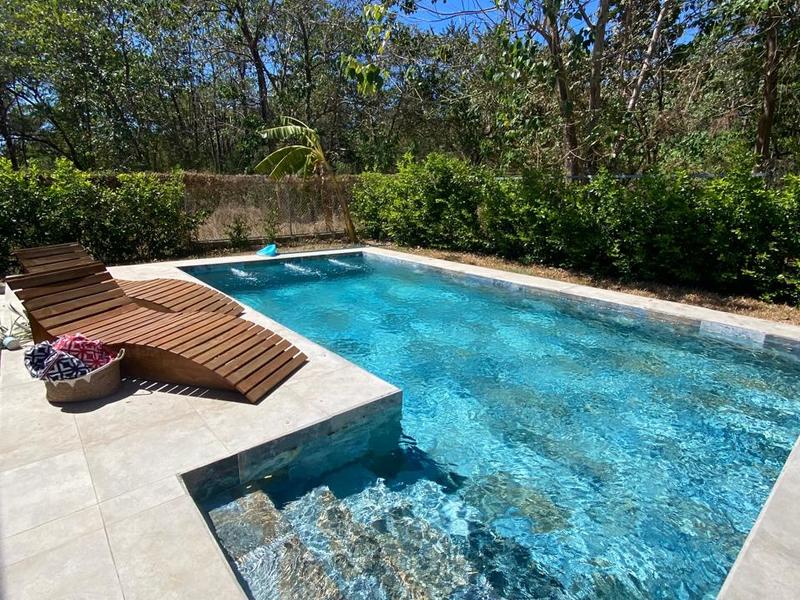 Outdoor living is a key feature, with a 8 x 4 meter swimming pool set within the spacious lot, creating an inviting area to relax and enjoy the tropical surroundings. With its recent construction, ample land size, and multiple living spaces, this property offers a great opportunity for a primary residence, vacation home, or investment near the beach in Playa Grande.