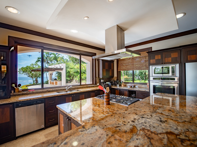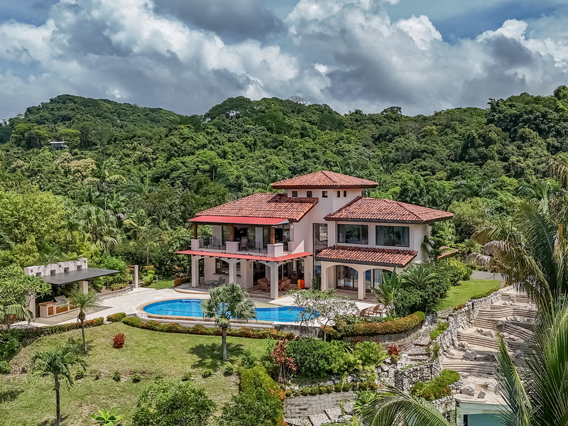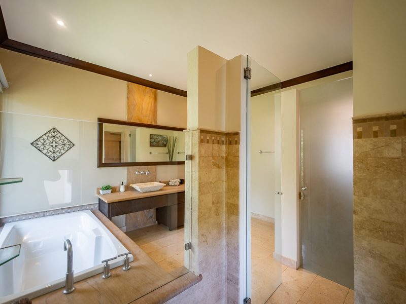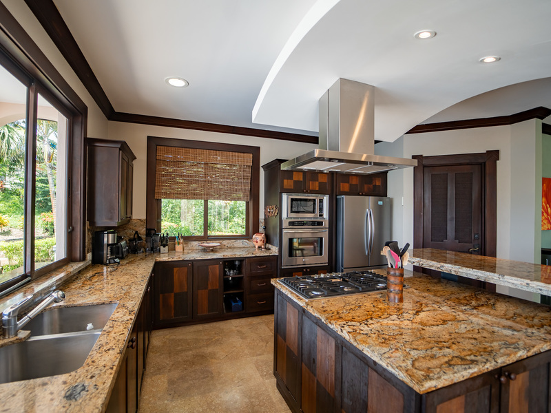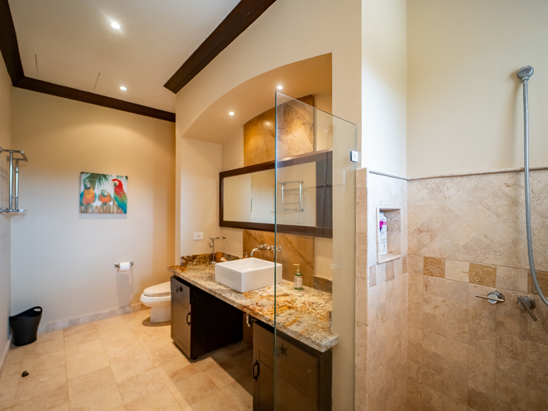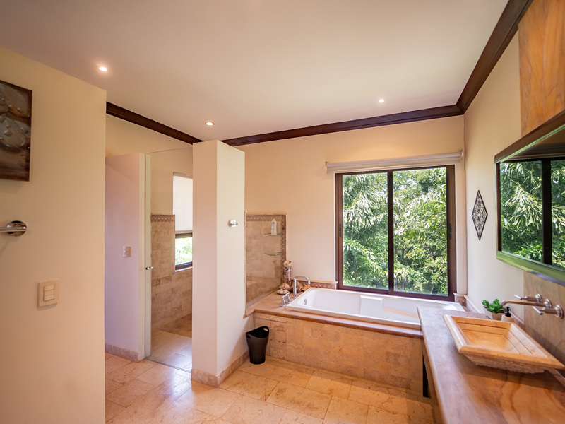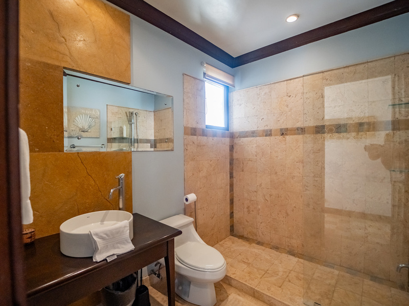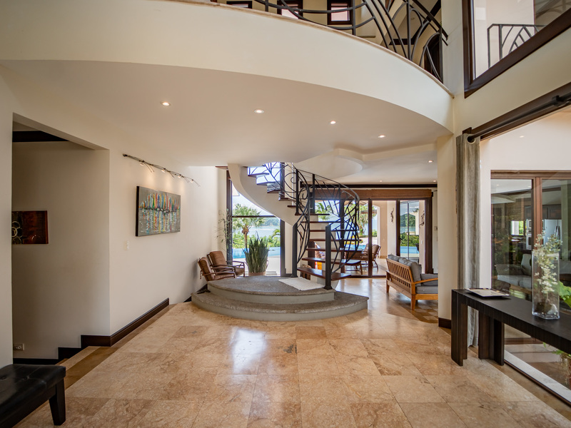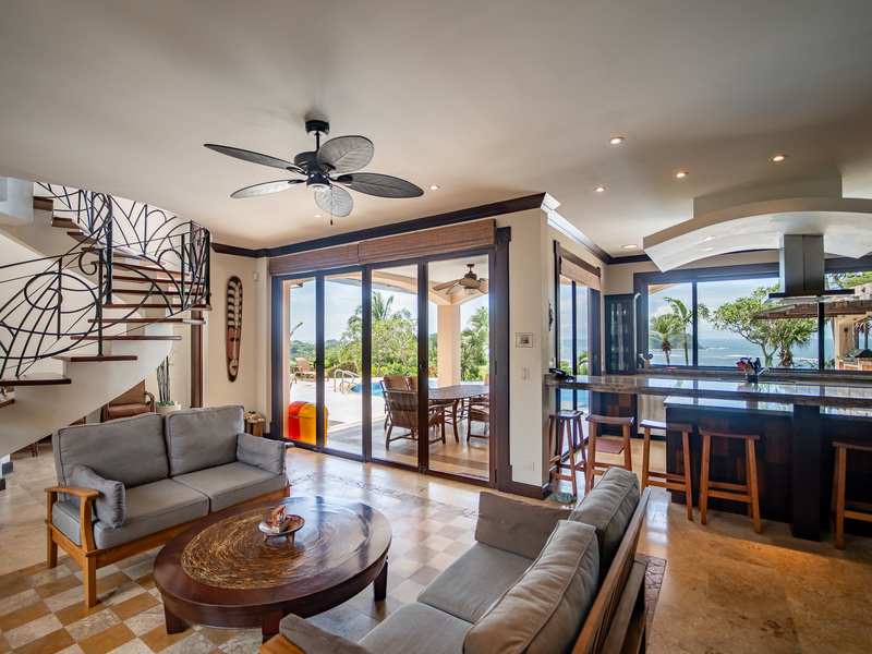 High-end finishes—local hardwoods, polished Colombian limestone floors on the lower level, and high-quality laminate wood floors in the upper bedrooms—blend natural textures with refined style, creating a relaxed tropical atmosphere.