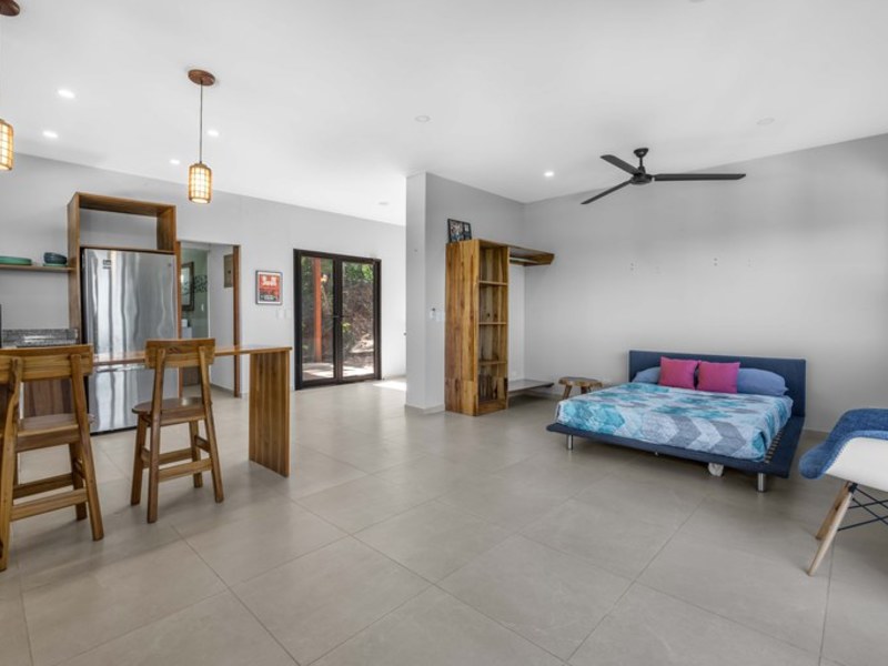 Guest Casita: Detached studio with full kitchen, bathroom, laundry, and private ocean-view balcony.