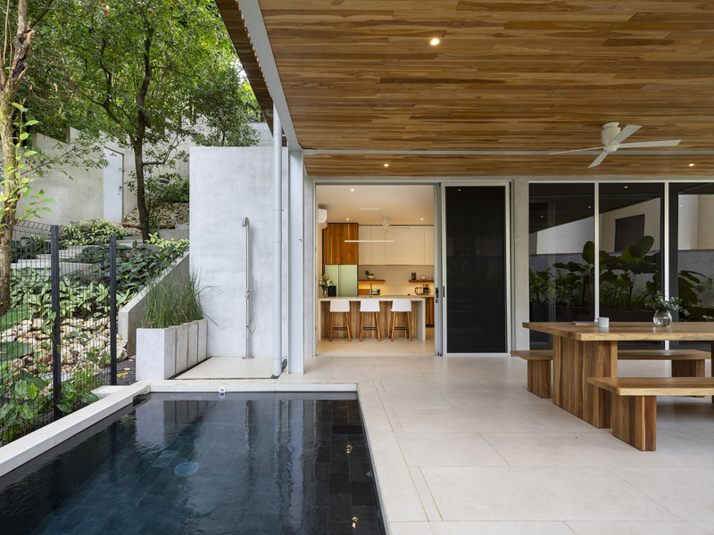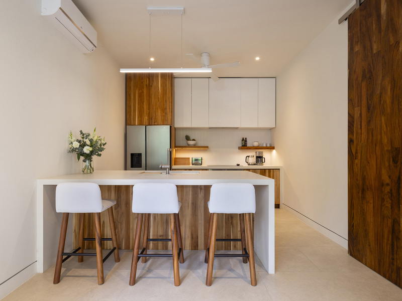 Casa Haven. Modern luxury property with two independent living units on an 829 m² lot, just a 6-minute walk to Playa Pelada and 12 minutes to Playa Guiones. The ground-floor villa features 2 bedrooms, 2 bathrooms, a fully equipped kitchen, a covered outdoor living area, and a private plunge pool. The main residence, spanning the upper two floors, includes 4 bedrooms, 4.5 bathrooms, expansive open-concept living spaces, and a 10’ x 42’ lap pool with an outdoor entertaining area.