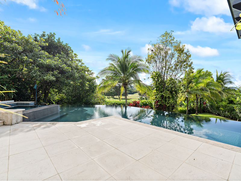 Set on a generous 1,040 m² lot adjacent to the golf course, the outdoor areas include mature tropical landscaping, a private swimming pool, and a heated jacuzzi—perfect for relaxing in a peaceful, resort-style environment.