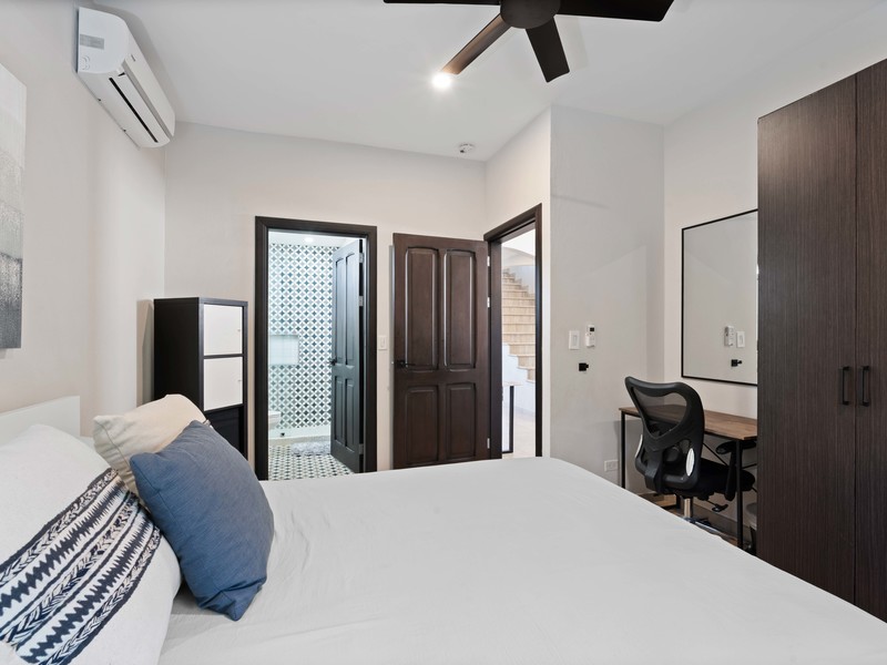 A separate lower-level garden suite adds valuable flexibility. With its own private entrance, this self-contained space includes two bedrooms, one bathroom, a full kitchen, laundry area, and ocean views, making it ideal for guests or rental use. The thoughtful layout and strong rental appeal make this property a standout option within Reserva Conchal.