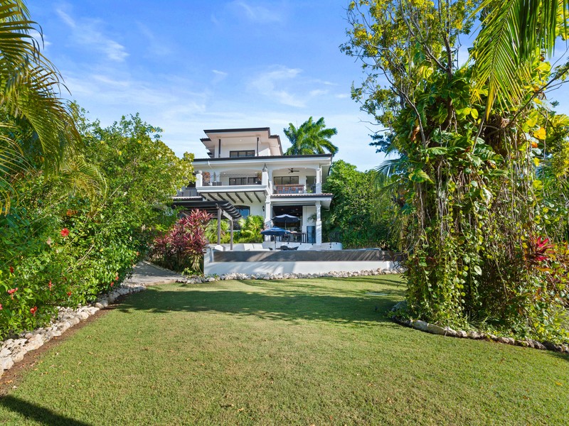 The main residence features six bedrooms and five bathrooms, with expansive views that stretch across the Pacific Ocean, Conchal Bay, and the renowned championship golf course. Open living spaces and large windows invite in natural light, ocean breezes, and unforgettable sunsets, creating an ideal setting for both everyday living and entertaining.