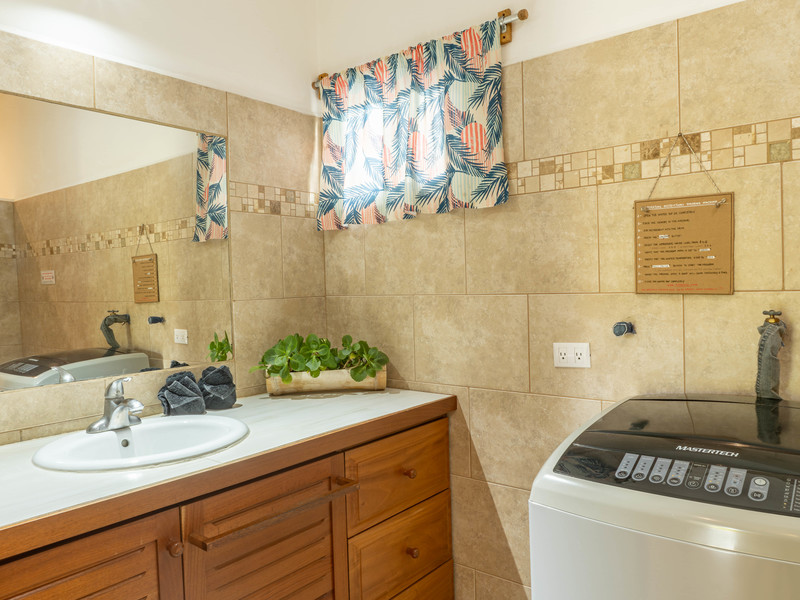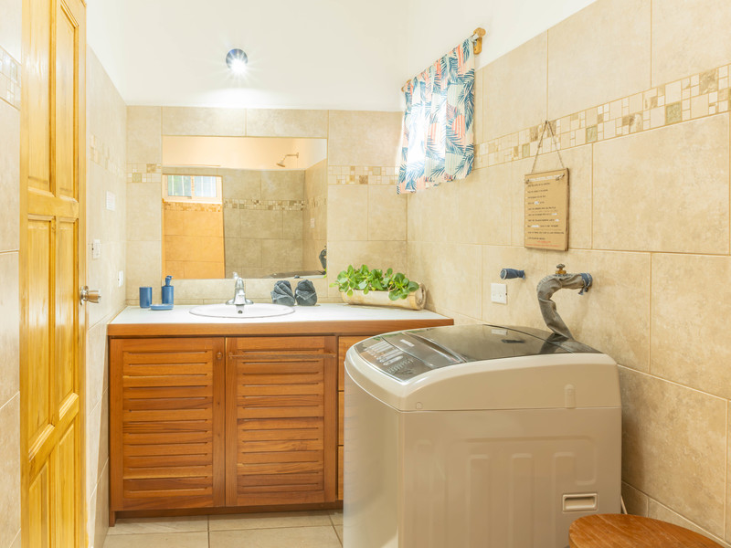 At the rear of the property is a dedicated laundry and storage room with washing machine, dryer, and a separate toilet, adding convenience for owners and/or cleaning staff.