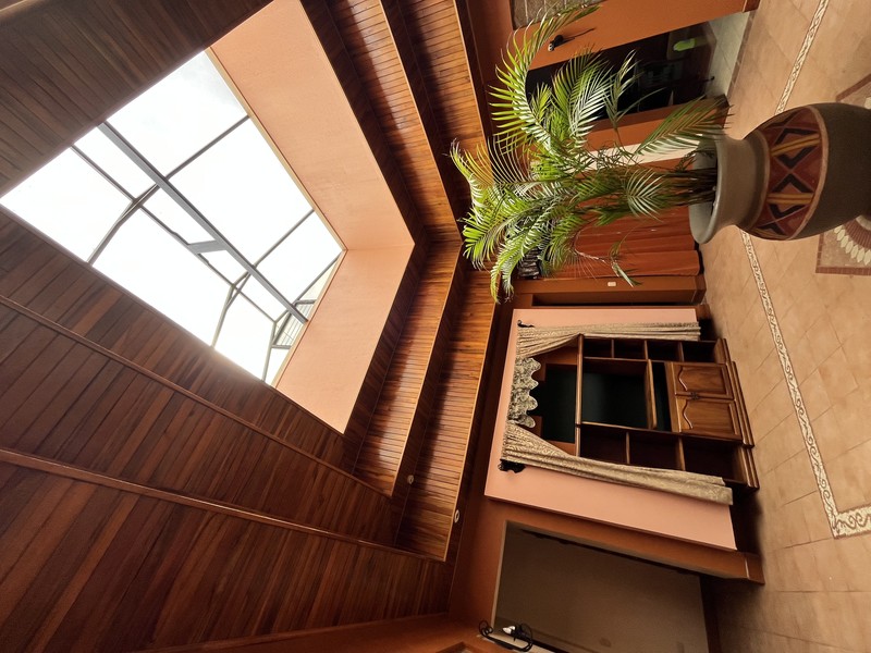 • Soaring hardwood ceilings with exposed Almendro beams