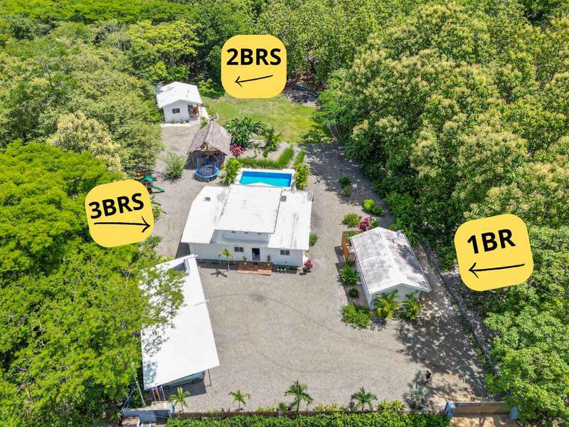 The estate includes a 3-bedroom, 2-bathroom main house with its own private pool, plus two additional casitas: