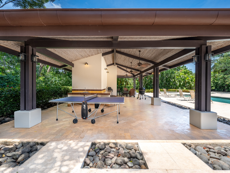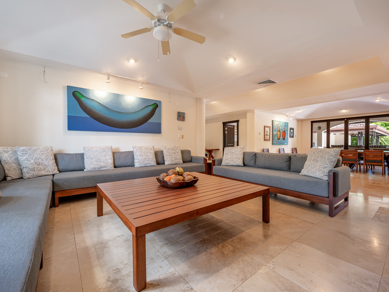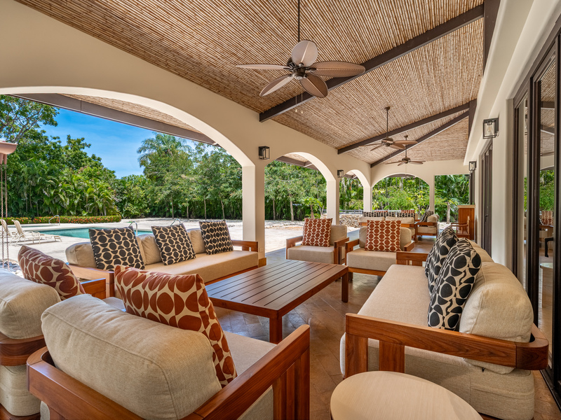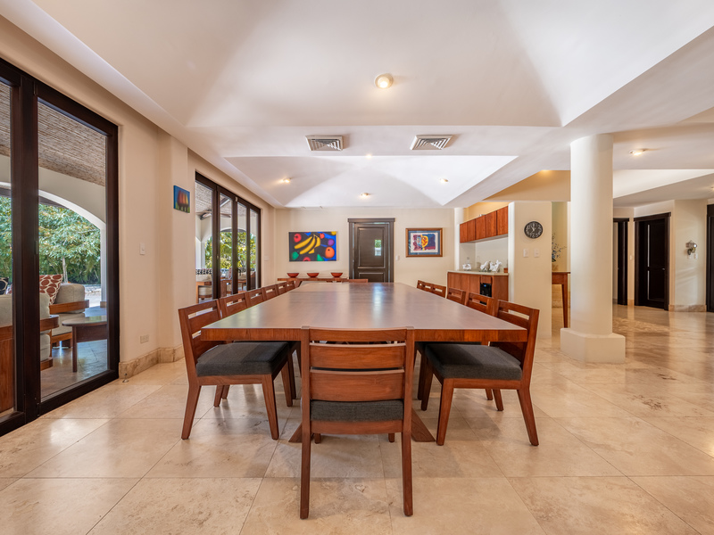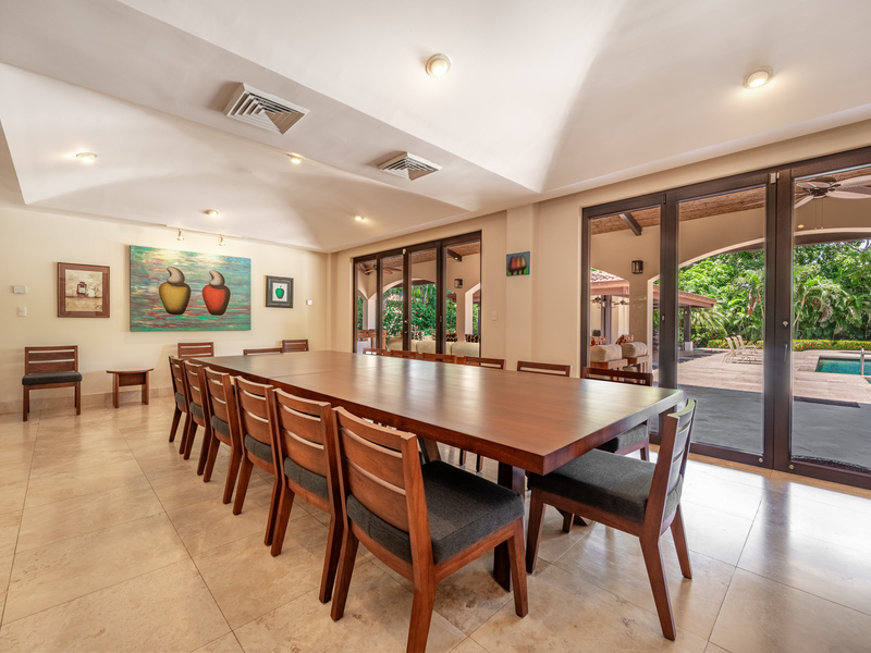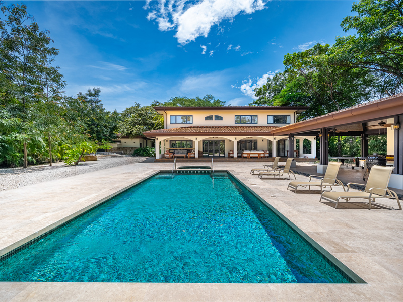 Stunning luxury residence for sale in Hacienda Pinilla Guanacaste. Located in the prestigious Reserva de Golf community, this property offers 740 m² of refined construction on a 2685 m² lot. Fully furnished and move-in ready, the home combines timeless architecture with modern comfort. It features seven bedrooms including a master suite with private bath, walk-in closet and balcony, four guest bedrooms each with ensuite bathrooms, and a convenient main-floor guest suite. Expansive social areas and bright interiors open into a gourmet kitchen with pantry and storage, a family TV lounge, and elegant spaces for relaxation and entertaining.