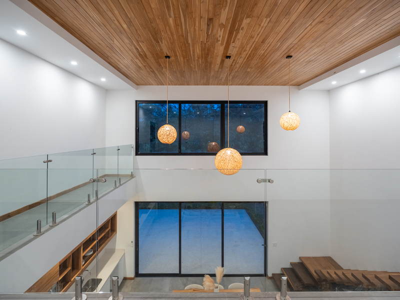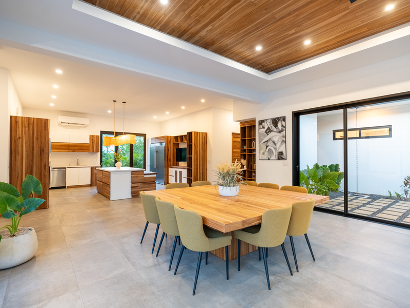 The Main House is designed for both elegance and functionality, with expansive living and dining areas perfect for entertaining or unwinding. The open-concept living room seamlessly connects to a serene pool on one side and a lush indoor garden on the other, offering a perfect harmony of indoor-outdoor living. At the heart of the home is a gourmet kitchen, outfitted with premium appliances and sleek finishes. The home features four spacious bedrooms, each with its own ensuite bathroom, offering maximum privacy and comfort.