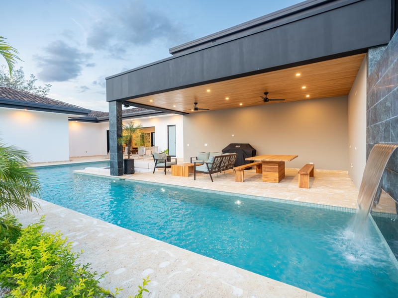 Step outside to your private tropical oasis, complete with a resort-style pool that includes a waterfall and lap area. The outdoor terrace, featuring a cozy firepit, is ideal for evening gatherings or peaceful moments under the stars. Inside, high-end finishes and artisan wood details bring warmth and sophistication throughout.