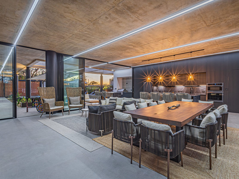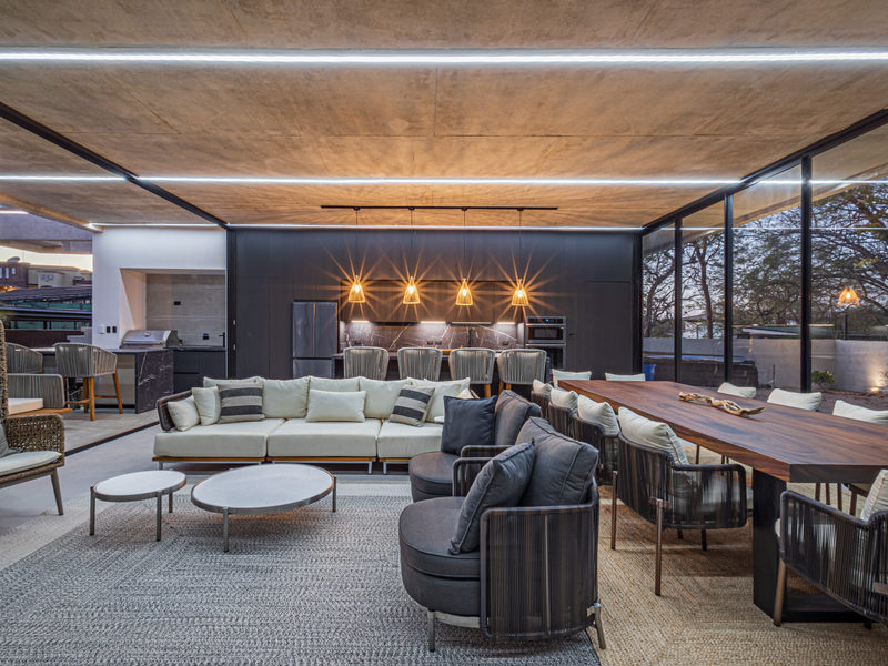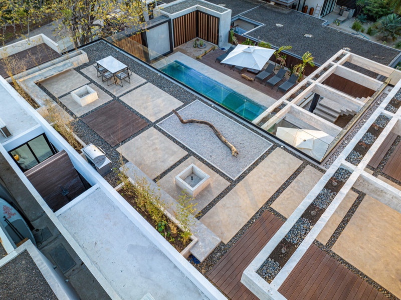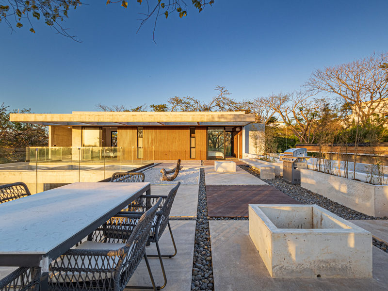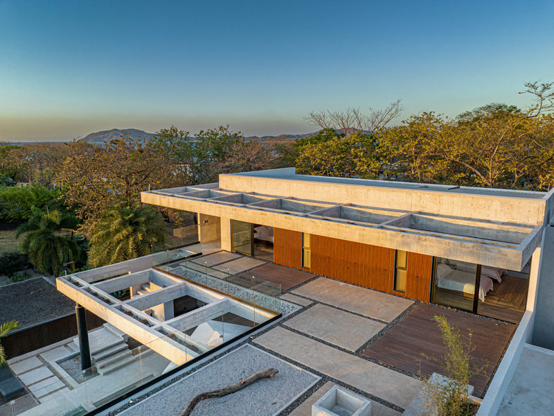 Designed by acclaimed architect Eric Bogantes of Alianz Estudio, the home reflects a modern architectural vision focused on clean lines, natural materials, and seamless indoor-outdoor living. The property features 6.5 bedrooms and 7.5 bathrooms, thoughtfully arranged within an open-concept layout that maximizes natural light, ocean breezes, and connection to the surrounding environment.