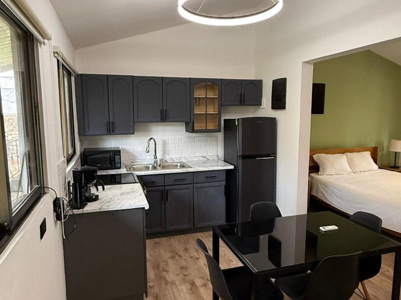 Each thoughtfully designed studio provides everything needed for comfortable living, including a full kitchen appliance package, dining set, bed, sleeper sofa, and private bathroom. A shared washer and dryer add extra convenience for all tenants.