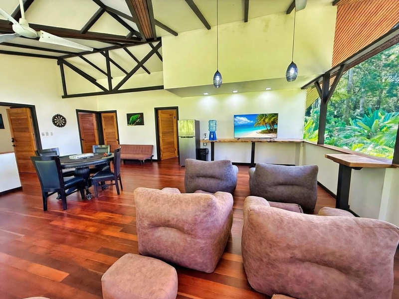Complementing the main house are two charming independent bungalows (casitas), each designed for privacy and comfort. These units include a convenient kitchenette, full bathroom, and their own private dipping pool (plunge pool), ideal for couples or additional guests seeking a more secluded retreat. All structures boast modern construction, air conditioning, and beautiful mountain/jungle views from every angle.