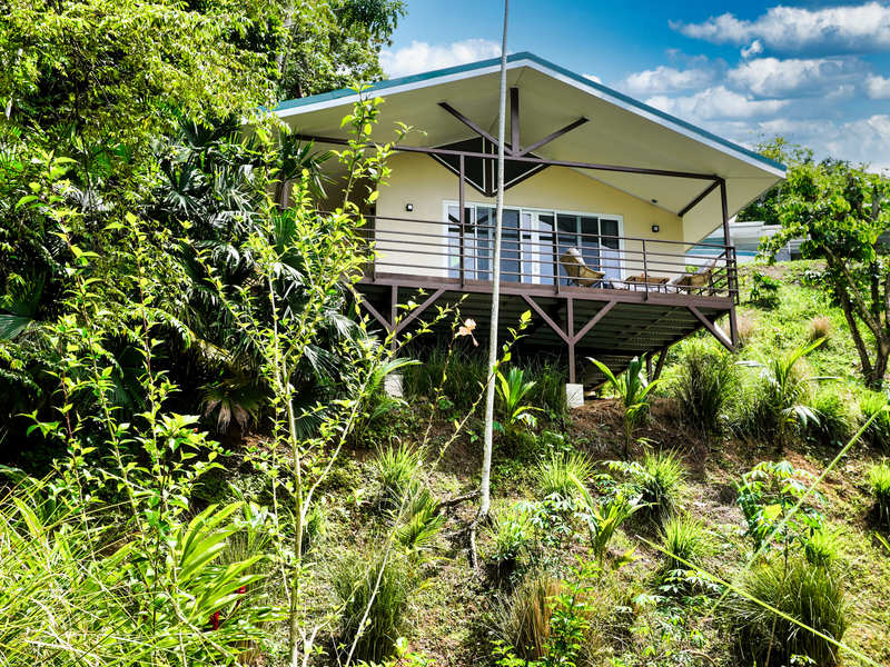 Enhancing the estate's appeal are four modern guest bungalows, each with private entrances and a proven track record in vacation rentals since 2022. These airy, well-appointed units feature insulated glazing, insect screening, full kitchens, stylish bathrooms with glass showers, and covered verandas that extend living areas into the surrounding gardens and jungle.