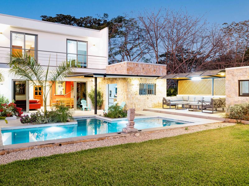 Casa Jasmine 2: A single-story 3-bedroom, 2-bathroom home with a large living-dining area and a beautiful pool. Enjoy breathtaking sunsets from this tranquil property.
