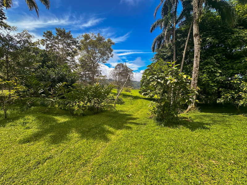 The mid-elevation climate is ideal: comfortably warm during the day, cool in the evenings, and refreshed by consistent breezes. The property is already established with a diverse collection of fruiting trees, taking advantage of the region’s fertile soil and reliable rainfall. This natural abundance makes the land especially appealing for those interested in permaculture, hobby farming, or simply enjoying a sustainable lifestyle in tune with the environment.