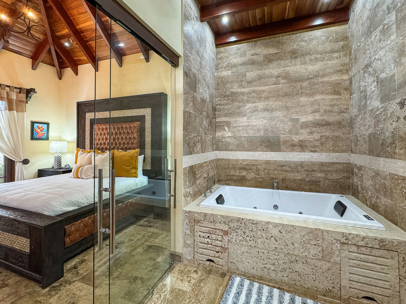 There are four immaculately appointed suites, as well as an additional four rooms all with double queen beds. The main property has 15 bathrooms. There is also a guest house with four bedrooms, 2 bathrooms, terrace and kitchen. There is also a housekeeper's room with terrance, kitchen and bathroom. All rooms have air-condition.
