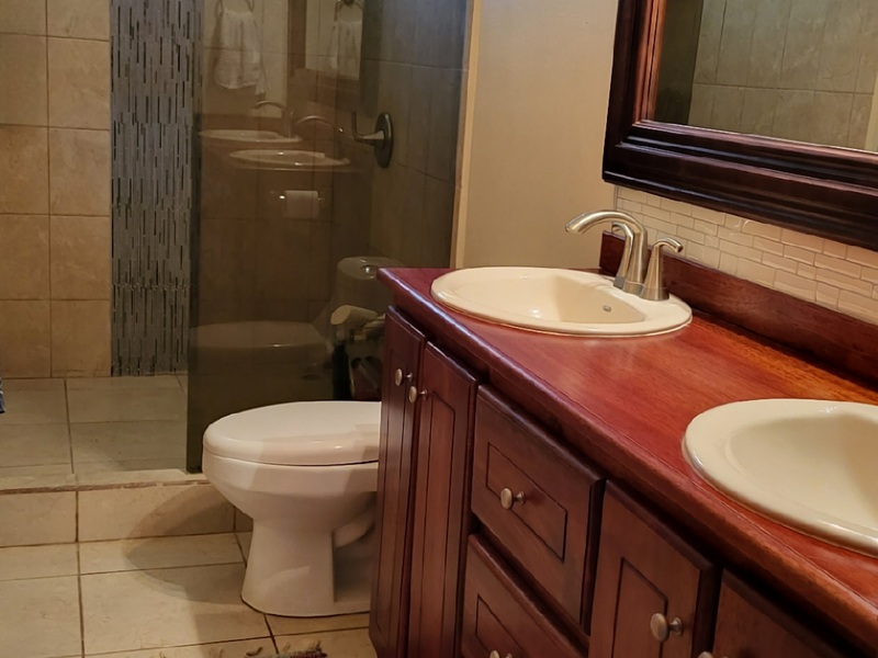 Beds, cabinetry, and closets made from local Guanacaste or Pochote wood. Custom Pochote kitchen and bathroom cabinets, plus solid wood furniture included – ready for immediate occupancy.