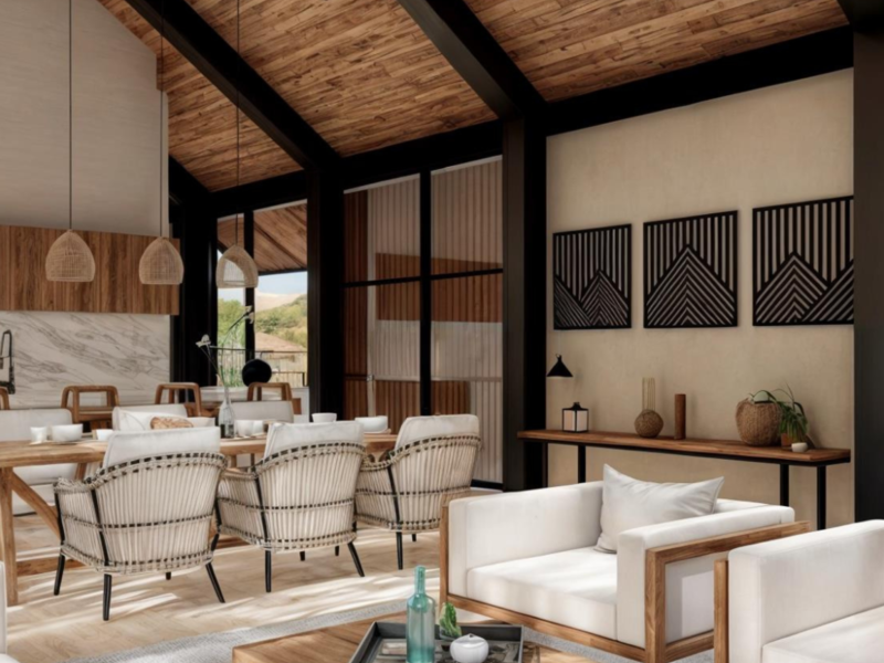 The home’s architecture is tailored to the region's dry tropical climate, leveraging passive cooling techniques and sustainable materials to reduce energy consumption. Strategically oriented to maximize natural ventilation, Arroyo Escondido eliminates the need for artificial cooling systems, enhancing both comfort and sustainability. Built with locally sourced materials and durable finishes, this residence exemplifies timeless design that respects its environment. Arroyo Escondido isn’t just a home—it’s a carefully crafted experience of living in harmony with nature.