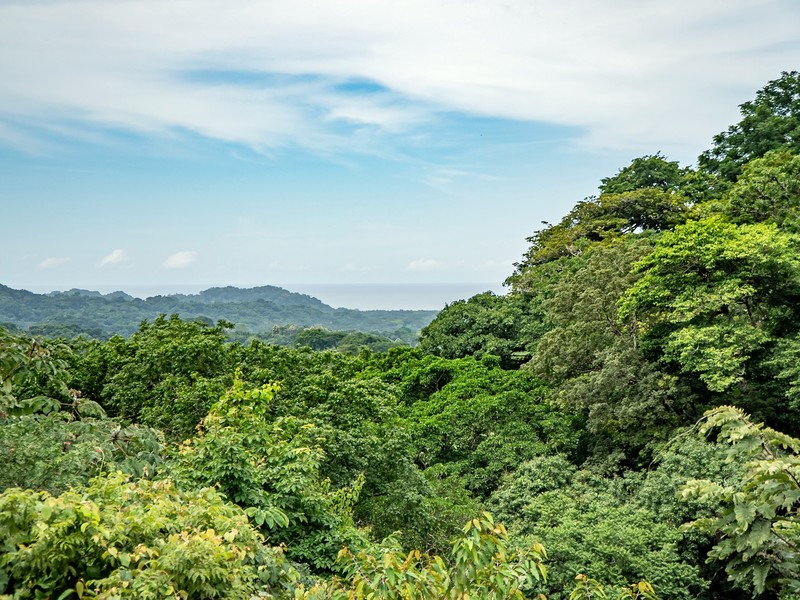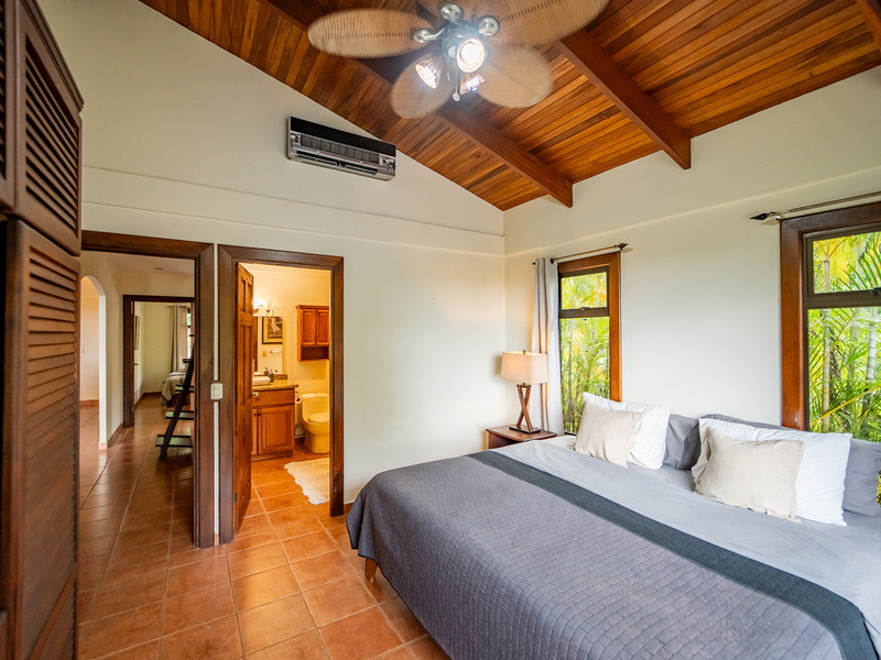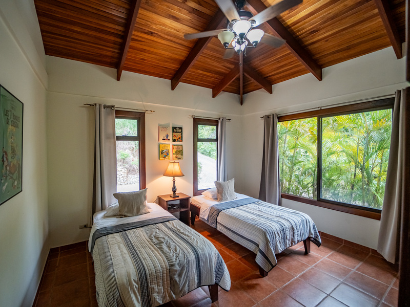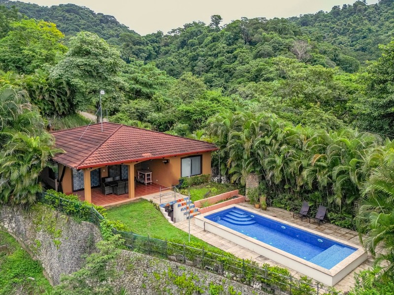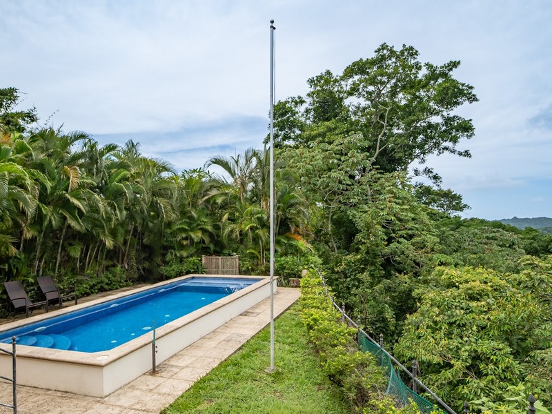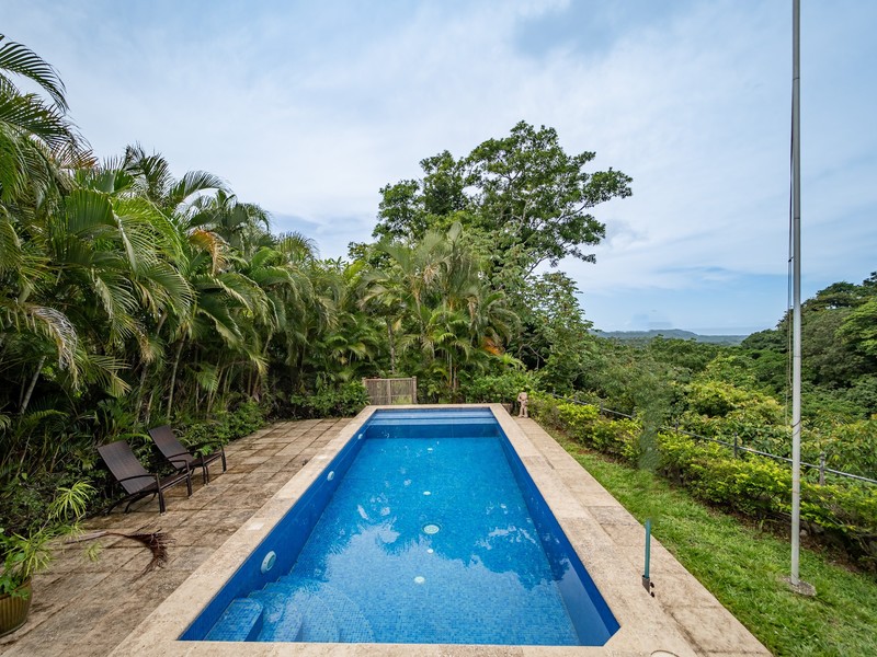 Set on a generous lot with both ocean and jungle views, this property offers a tranquil connection to its surroundings. In the rainy season, the soothing sound of a seasonal stream can be heard flowing through the valley below. The outdoor spaces are equally inviting, with a large covered patio, a pool for cooling off and an additional platform just below it—perfect for building a guest house, studio, or other structure.