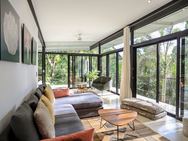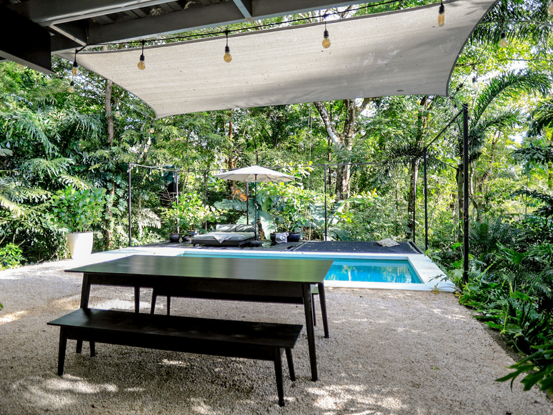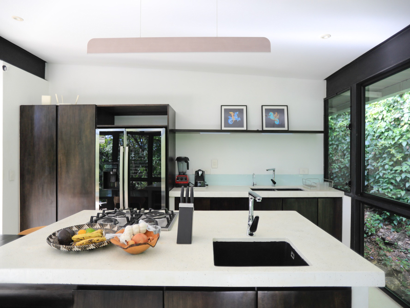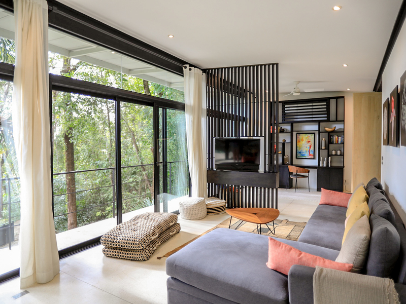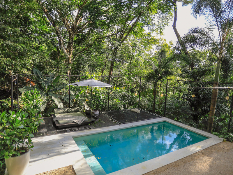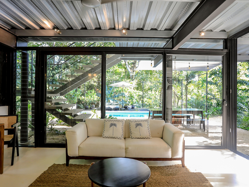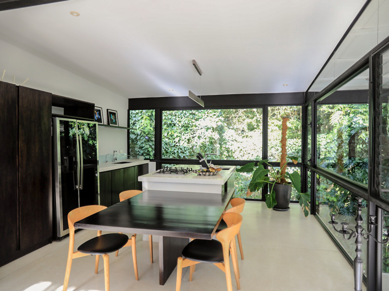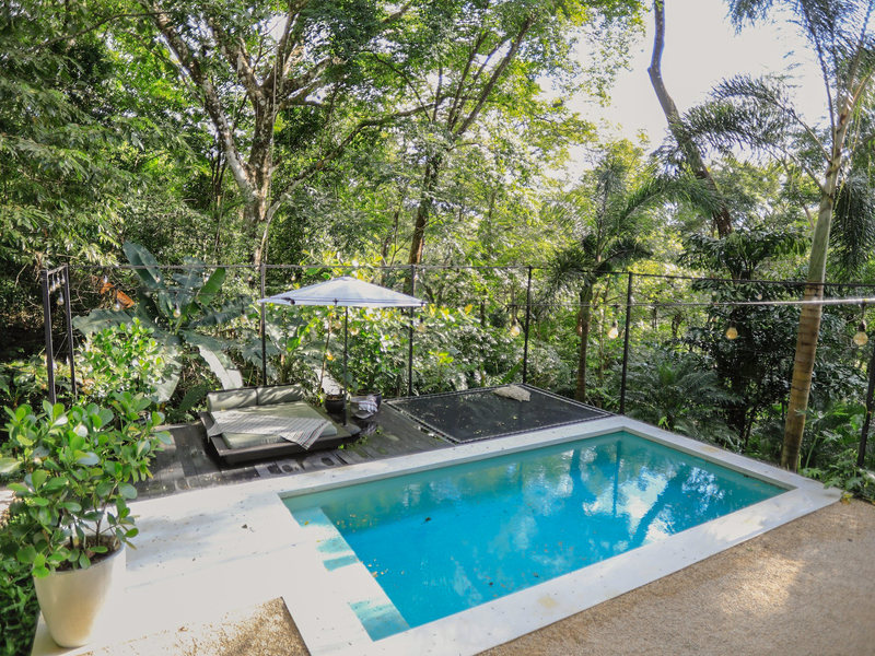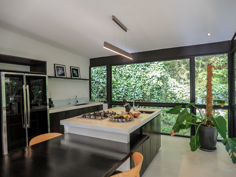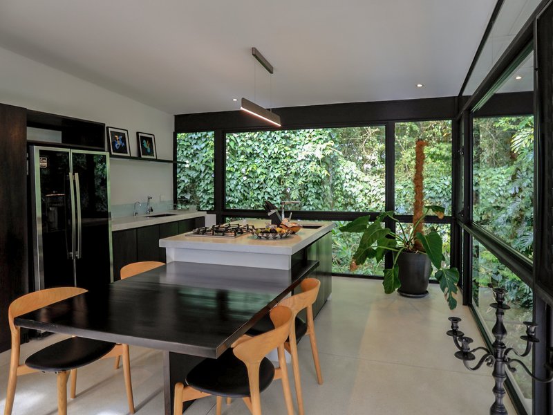 This beautifully designed two-bedroom house is located in a quiet residential area above Playa Hermosa and is surrounded by lush forest. Upon entering the electric gate of the property, there is a short driveway that leads to the covered parking area, which has sufficient room for one car and one quad. The gorgeous and meticulously landscaped gardens immediately give you the sense of being in a tropical oasis. A short flight of stairs takes you from the parking to the house. On the lower floor of the house is the guest apartment, which includes one bedroom, one open bathroom and a kitchenette with an open-plan living area. The floor to ceiling glass doors provide for beautiful natural light throughout. The main part of the house is located on the second floor, where you have the sensation of floating in the canopy of the trees. Again, the floor to ceiling glass doors and windows allow for beautiful natural lighting and views of the verdant forest. Here there is a large fully-equipped kitchen with a beautiful kitchen island and a dining table for four. From the living area you can relax and enjoy the views of the canopy. There is an adjoining office space for those that work remotely from home. The master bedroom also enjoys views of lush green and has a gorgeous ensuite bathroom. Outside there is a pool and deck area, with a house net - the perfect spot for relaxing, reading and entertaining. The total size of the lot is 5,000m2. The property has a registered well that provides water throughout the year. There is a high-speed fiber-optic internet connection, which makes this a great option for remote workers. From the property you are a ten-minute drive down to the white-sand surfing beach of Playa Hermosa.