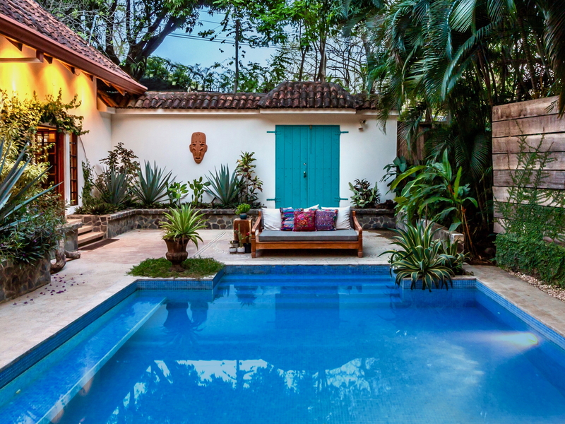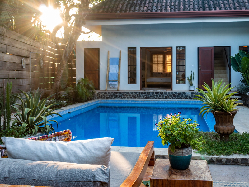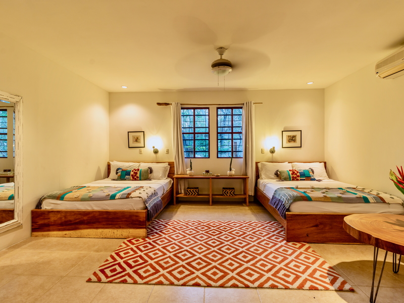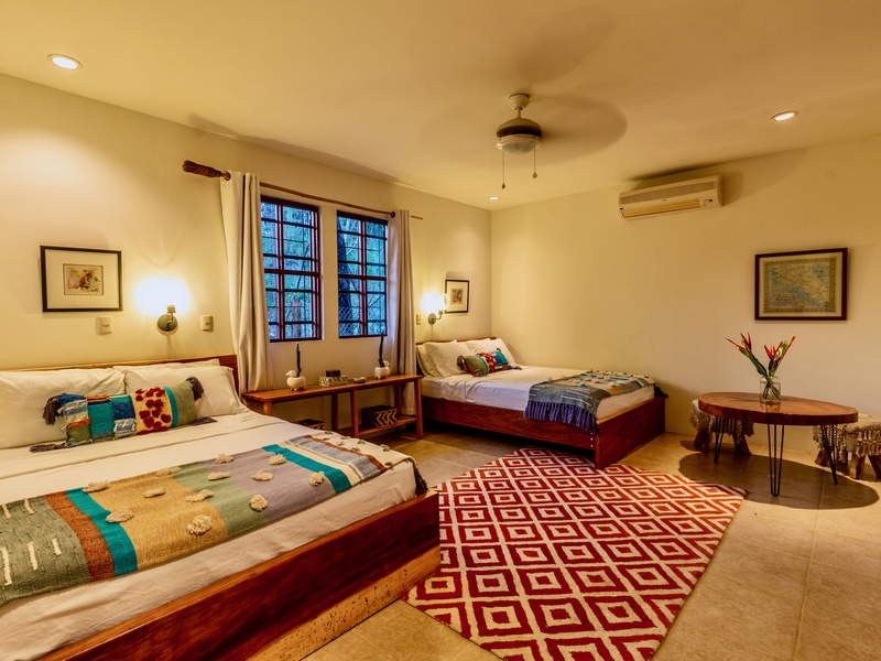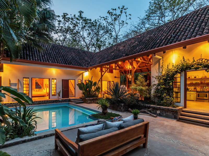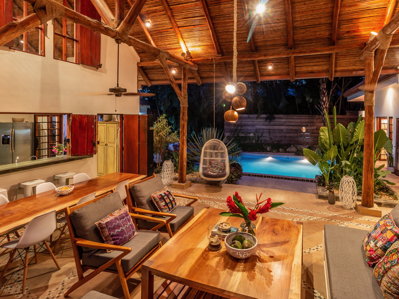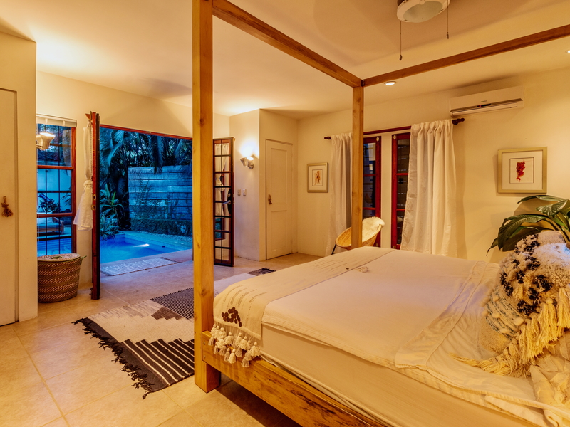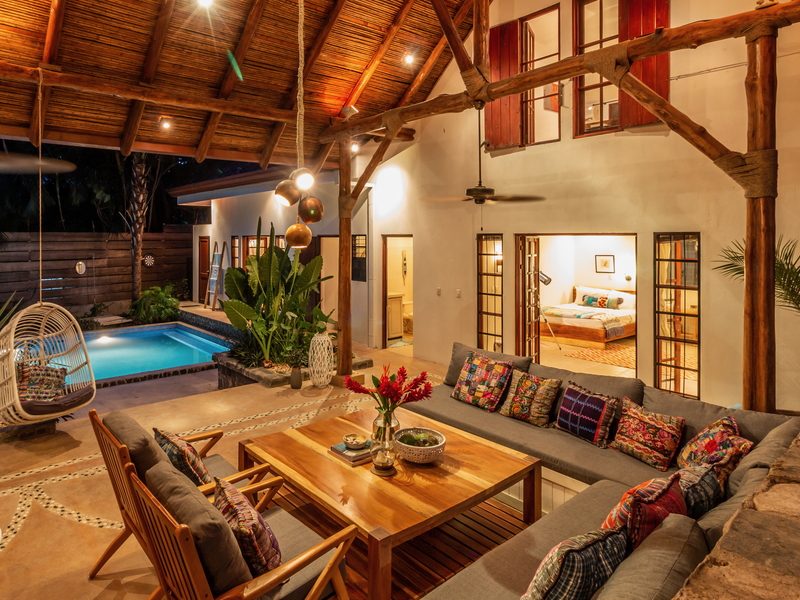 Enjoy a unique inside/outside living space in this large Spanish style villa. Nestled within mature palm and mango trees, the villa offers an intimate and private space. Spend your days by the pool or under the shade of the open air palapa, where a large outdoor lounge and dining area awaits you. Listen to birdsong or the howler monkeys while relaxing after a surf or a yoga class at one of the many studios in the area.