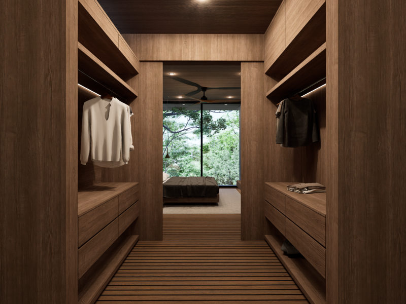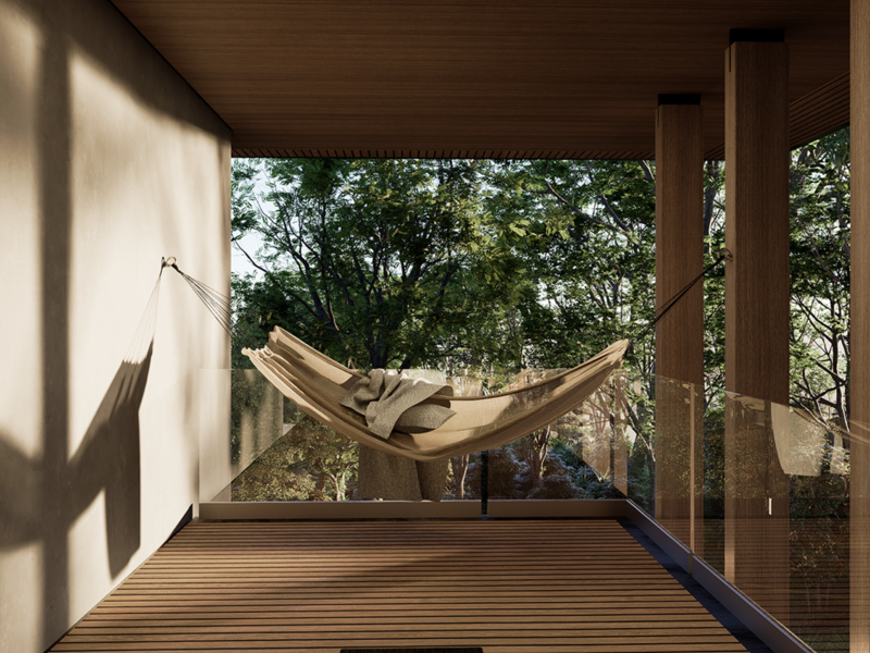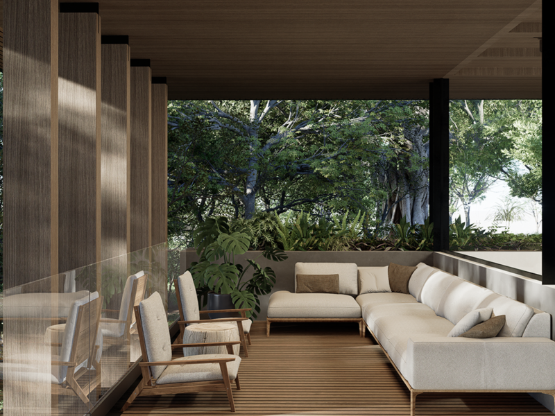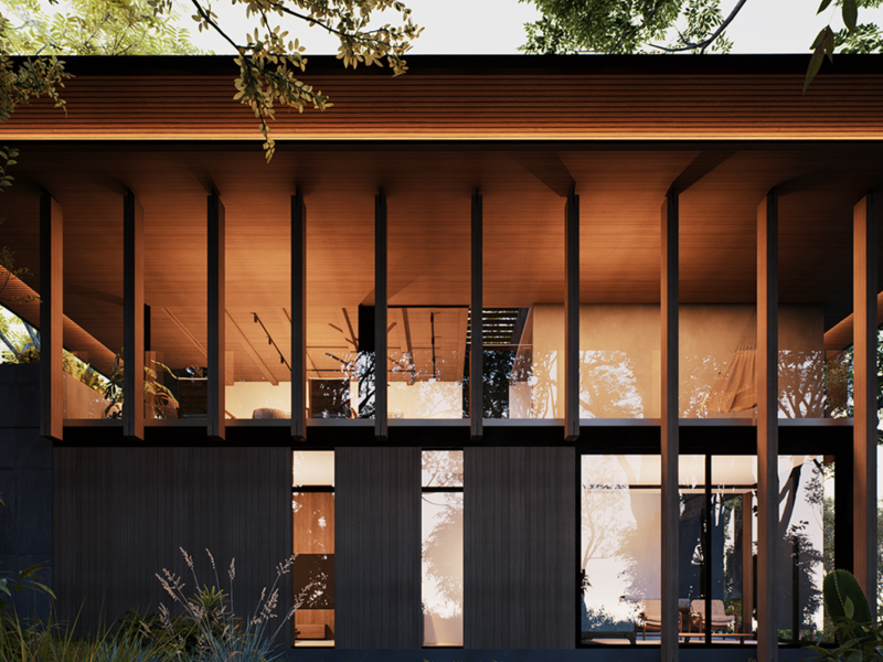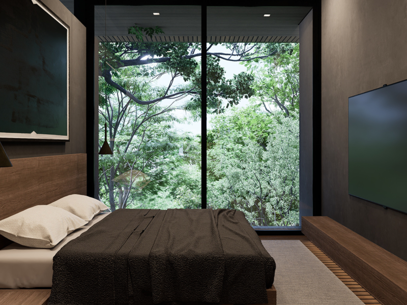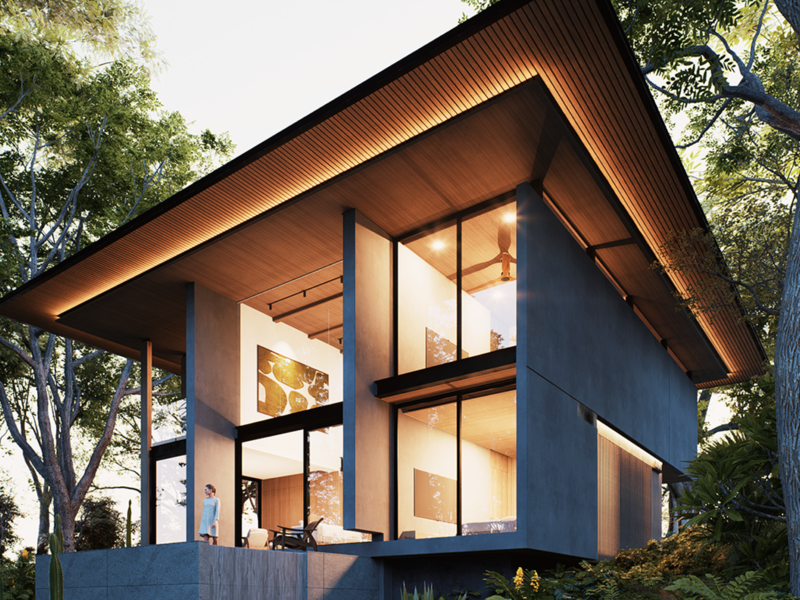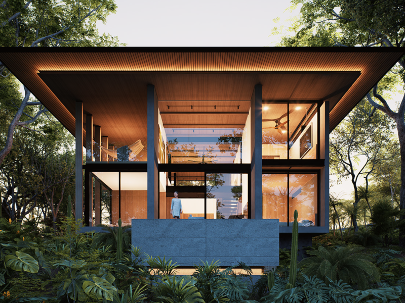 • Includes solar panels and battery systems for energy efficiency. • Designed for Lot 10, providing one of the best views of El Pochote. • Adaptable design as spaces can be reconfigured or repurposed over time. • Can be delivered with different floor plans. • Privately located at the end of the road, near Jardin de Contemplacion. • The backyard is against a green buffer of the neighboring property. • Each room and feature is arranged to enhance the connection with nature. • Built-in BBQ for outdoor entertaining. • Minimalist style. • Seamless integration with natural surroundings. • Yoga deck (optional). • Private outdoor pool (optional).