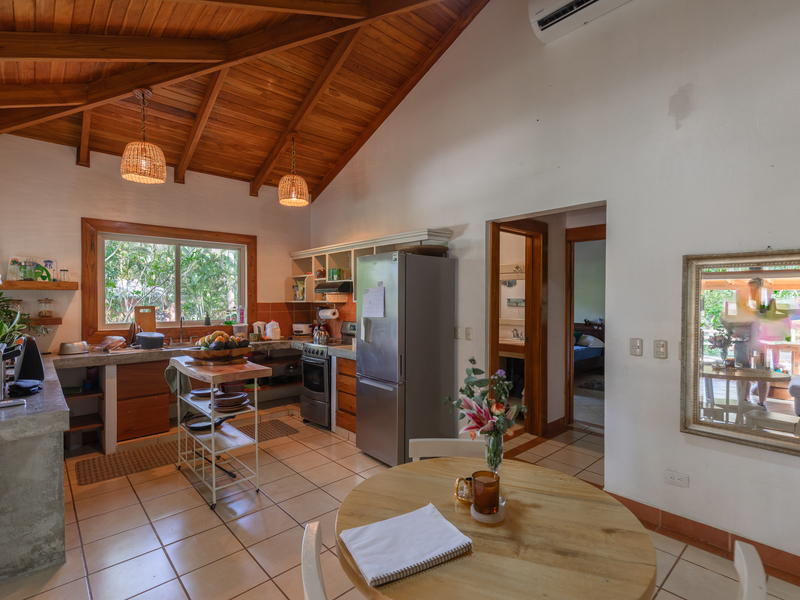 Spacious Living: A thoughtfully designed layout with 3 bedrooms and 2 bathrooms, ideal for family living or hosting guests. Scenic Patio: Relax and unwind on the beautiful patio, perfect for afternoon lounging while watching local wildlife pass by. Hilltop Views: Perched on the highest point of the property, the home overlooks vibrant tropical gardens, creating a peaceful, elevated vantage point. Jungle Paradise: Experience the tranquility of living in one of Nosara’s quietest areas, immersed in nature yet conveniently close to Playa Guiones’ shops, restaurants, and world-renowned surf. Gated Community: Enjoy peace of mind with the security and privacy of a gated jungle enclave. Whether you’re seeking a full-time residence, vacation getaway, or rental investment, this property offers a unique opportunity to embrace the Pura Vida lifestyle in an idyllic setting.