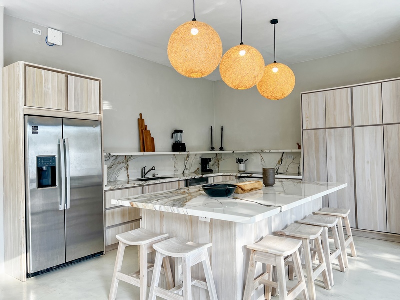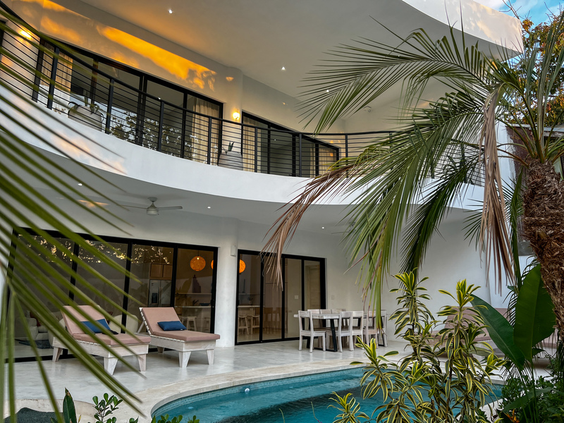 Discover coastal living at its finest in this exquisite brand-new home located in the vibrant North Playa Guiones section of Nosara. Just moments from the pristine surf break and a short stroll to a variety of delightful restaurants, hotels, shops, bars and hiking trails. Immerse yourself in the ultimate beach lifestyle in this thoughtfully designed property that perfectly blends modern luxury, comfort and Spanish Colonial design. Enjoy the perfect blend of beachside living and modern amenities with a unique location that places you near Iguana Surf Club and within walking distance to the majority of the town’s finest dining options, all within a quick five-minute stroll.