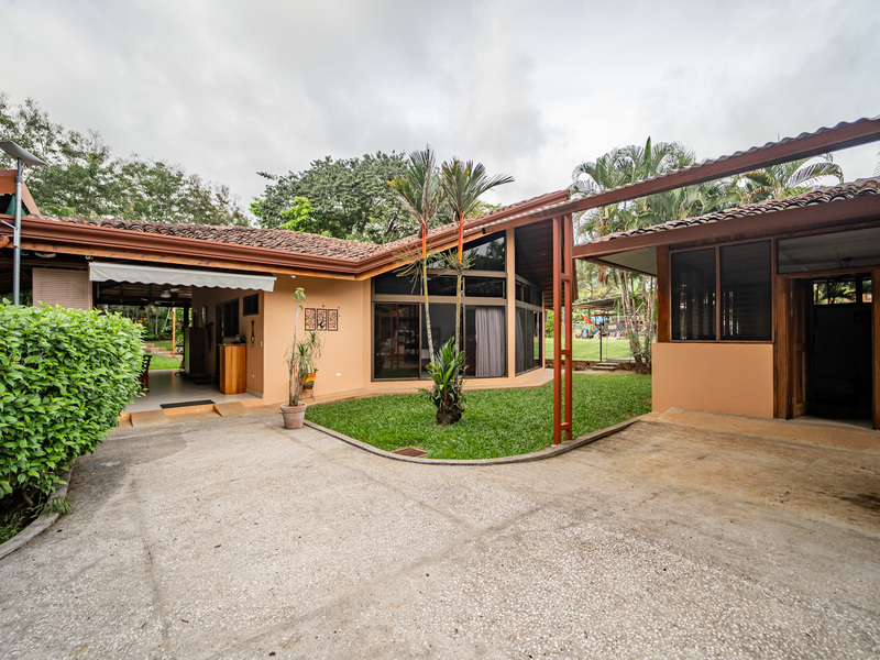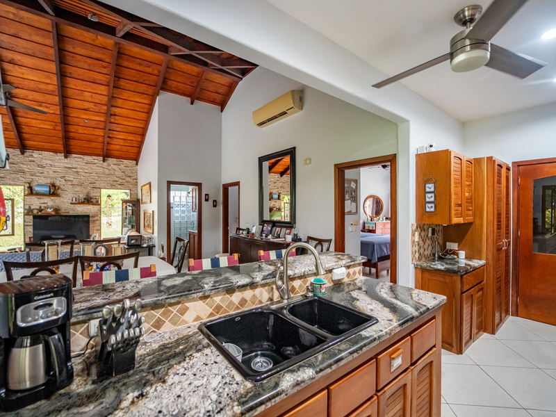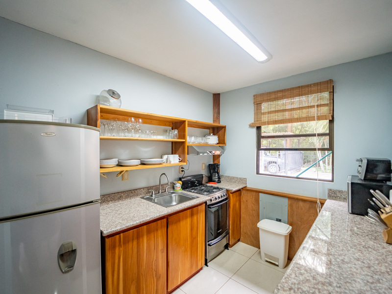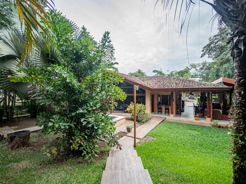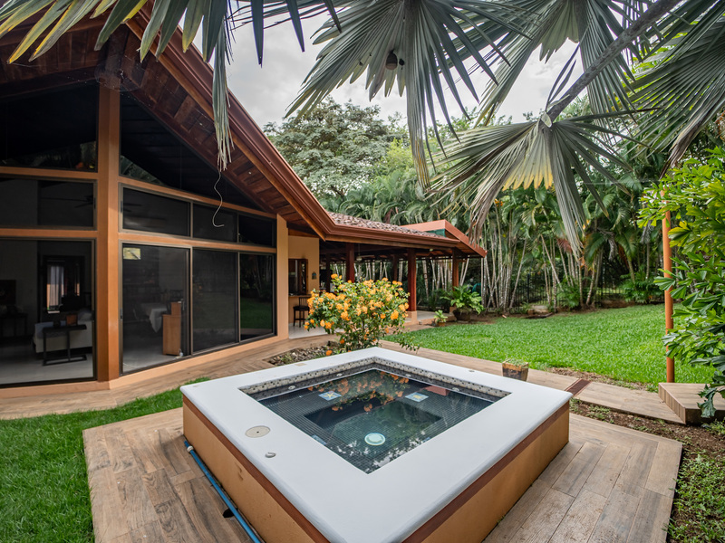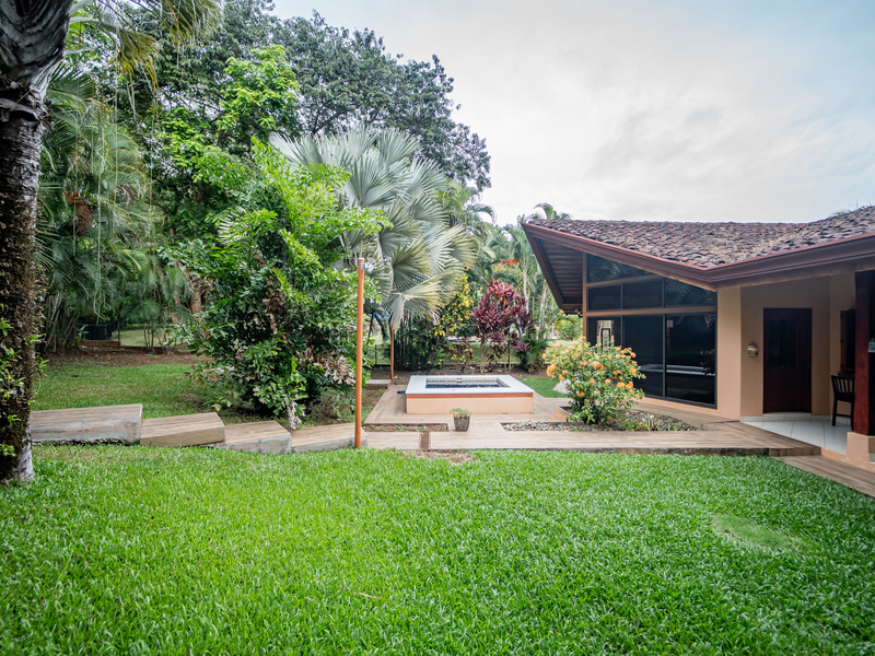 A major highlight of Casa García is the expansive outdoor kitchen and covered living area, thoughtfully designed for year-round enjoyment of the tropical climate. This welcoming space flows naturally from the interior, perfect for relaxing, hosting friends, or dining al fresco. In the backyard, a large in-ground jacuzzi offers the ideal place to unwind, while the green space at the front of the home provides room for gardening, pets, or future landscaping. The property also includes an electric gate for secure and easy access.