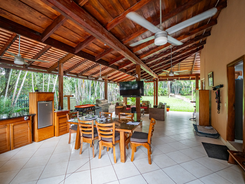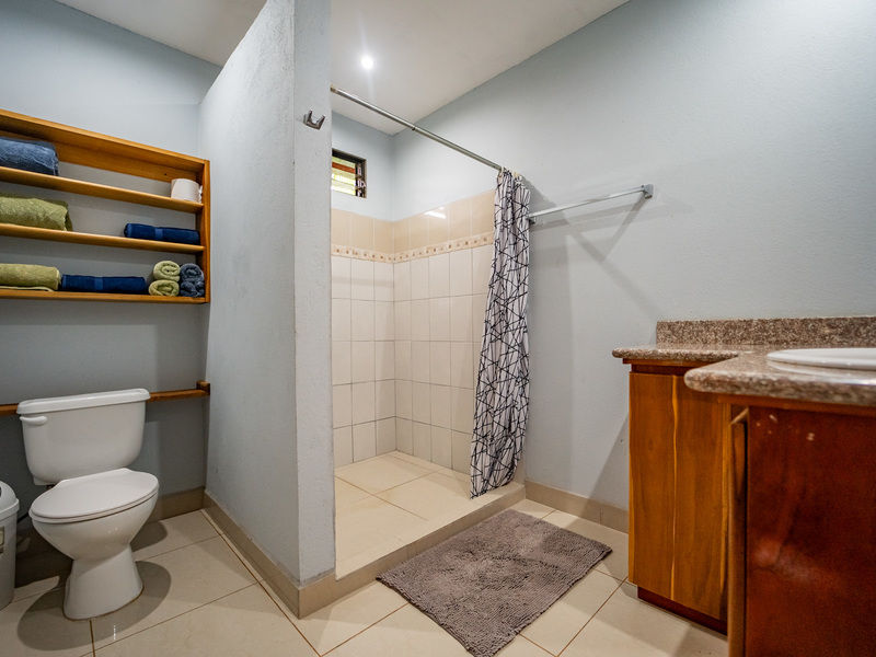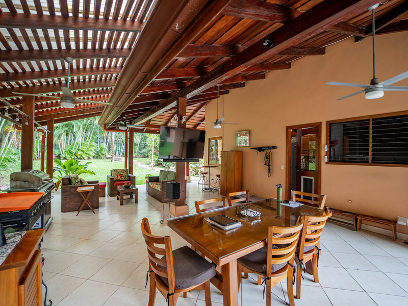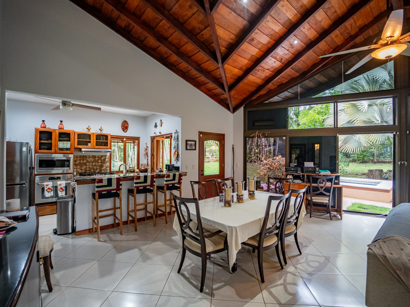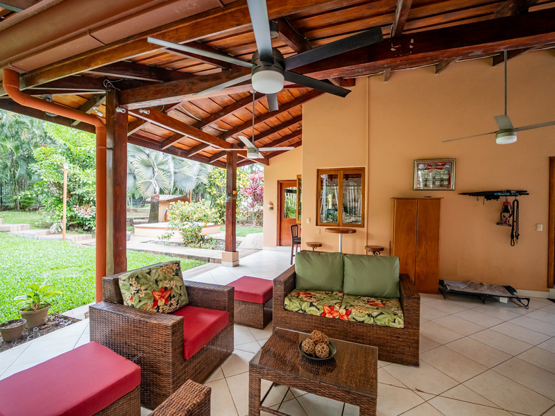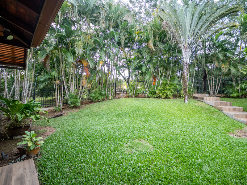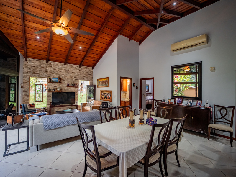 A major highlight of Casa García is the expansive outdoor kitchen and covered living area, thoughtfully designed for year-round enjoyment of the tropical climate. This welcoming space flows naturally from the interior, perfect for relaxing, hosting friends, or dining al fresco. In the backyard, a large in-ground jacuzzi offers the ideal place to unwind, while the green space at the front of the home provides room for gardening, pets, or future landscaping. The property also includes an electric gate for secure and easy access.