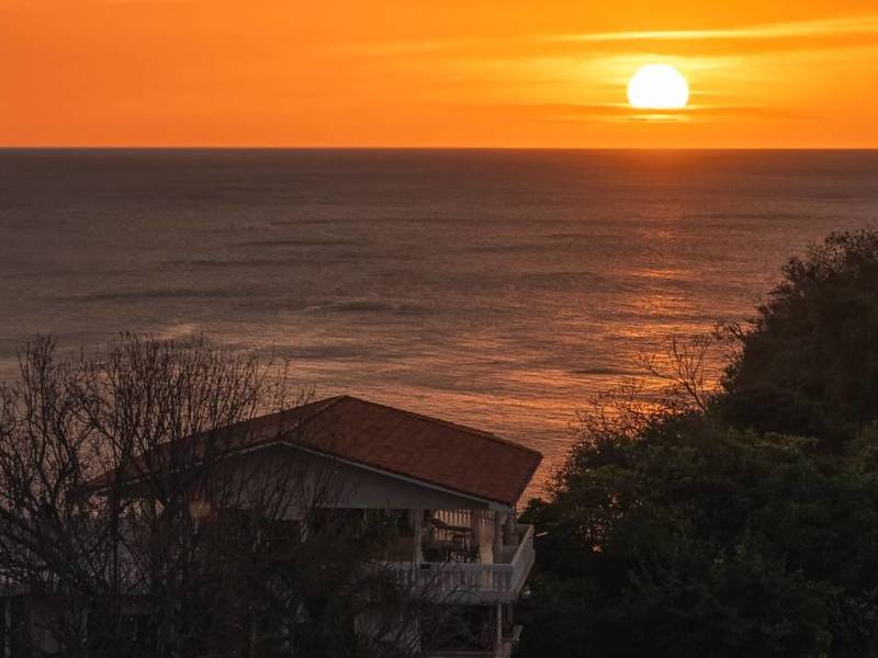 Here’s your chance to own one of the few fully titled oceanfront properties in the prestigious North Ridge of Playa Flamingo—a true rarity along Costa Rica’s Gold Coast. With breathtaking panoramic views of both sunrise and sunset year-round, this two-level estate presents unmatched potential in a location that defines coastal luxury.