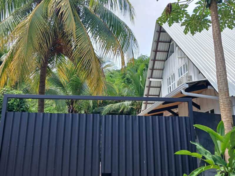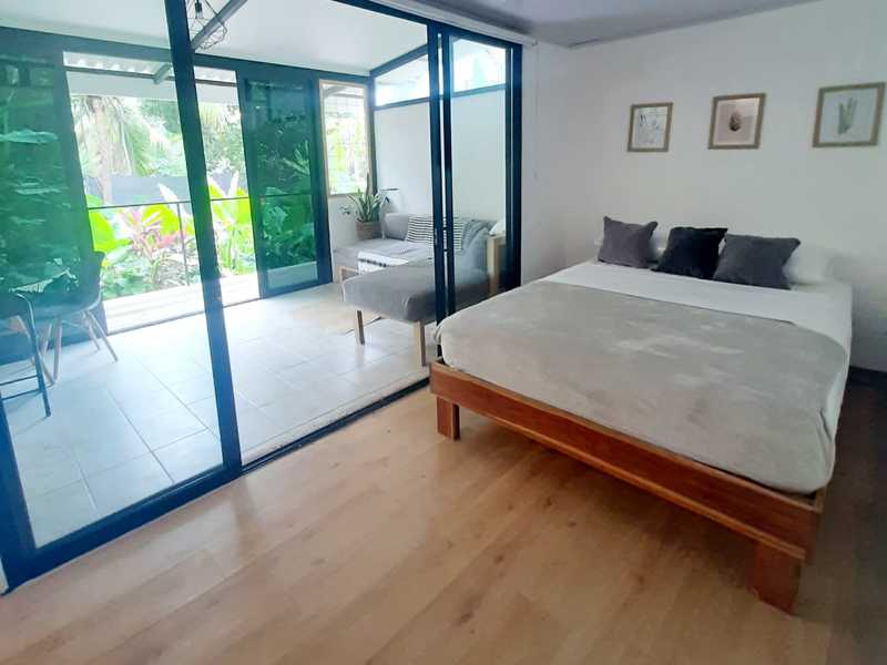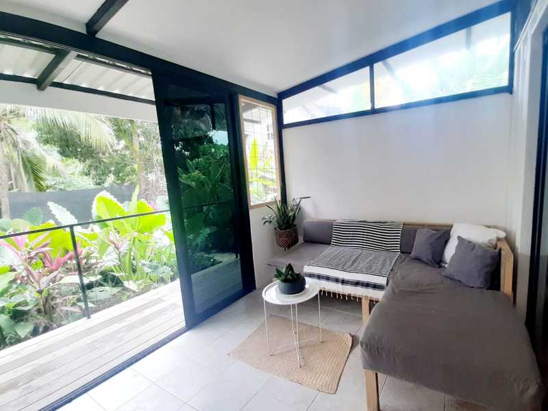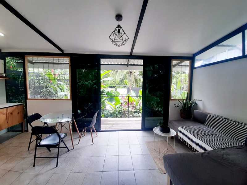 Naturally divided from the main house with a green fence and a separate entrance, this 1-bedroom, 1-bathroom container home offers privacy and versatility. Perfect as a rental, guest suite, or office.