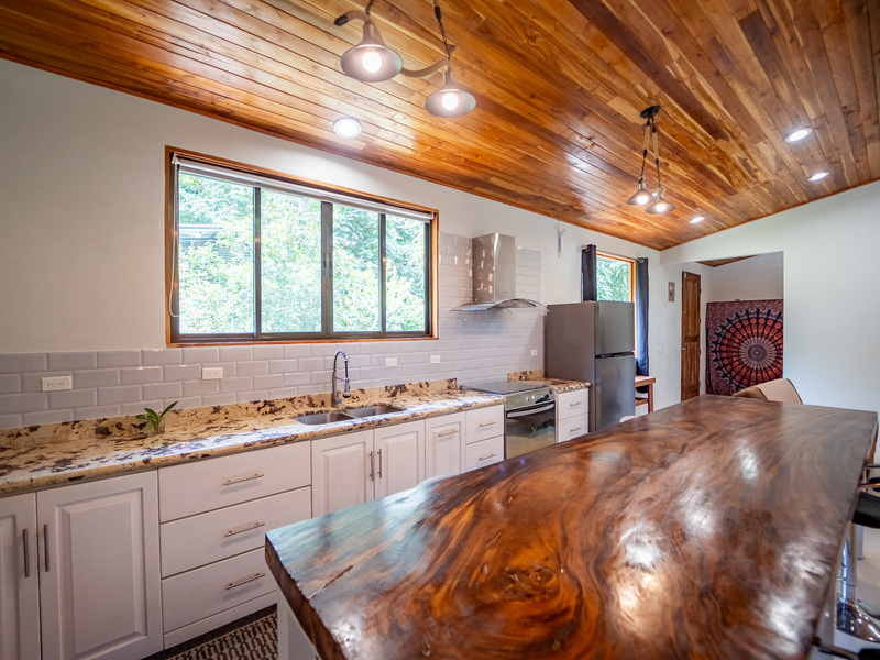 Set on a 792 m² lot with 250 m² under roof, Casa El Faro features high teak ceilings, a spacious open-concept layout, and lush landscaping. The modern kitchen is the heart of the home, featuring a stunning 3.5-meter center island crafted from Monkeypod wood and a full induction stovetop and oven. The bright living area connects to a large, fully covered outdoor deck that runs the length of the house—ideal for relaxing, entertaining, or enjoying the surrounding nature. The house is partially furnished and is shown with some tenant-owned items. A full inventory list is available.