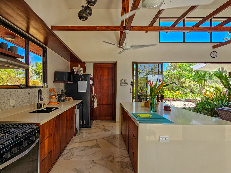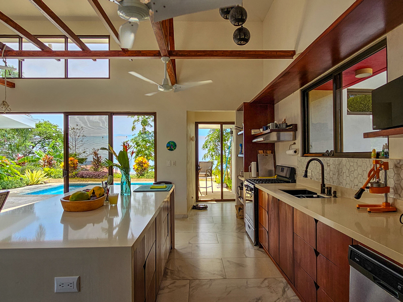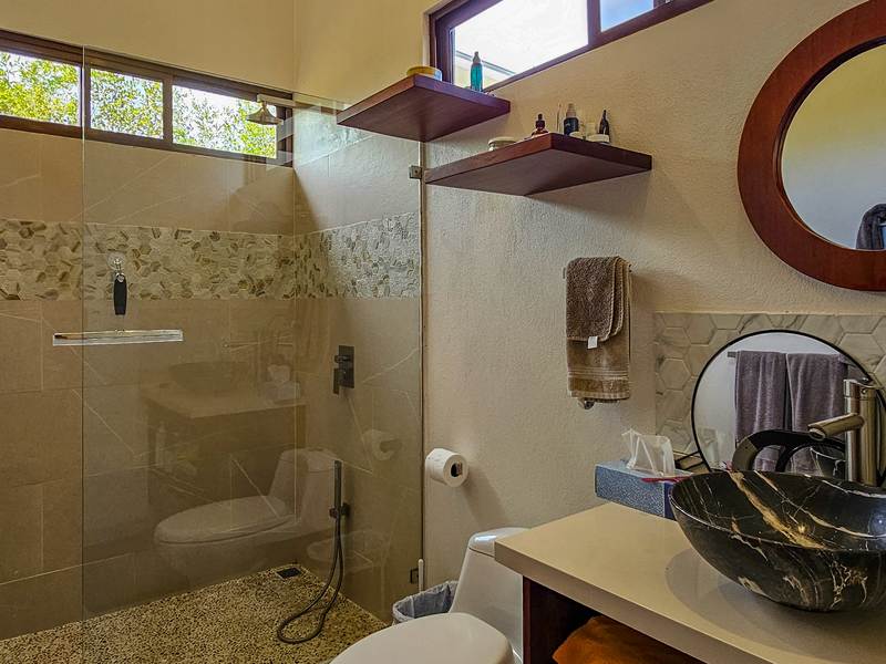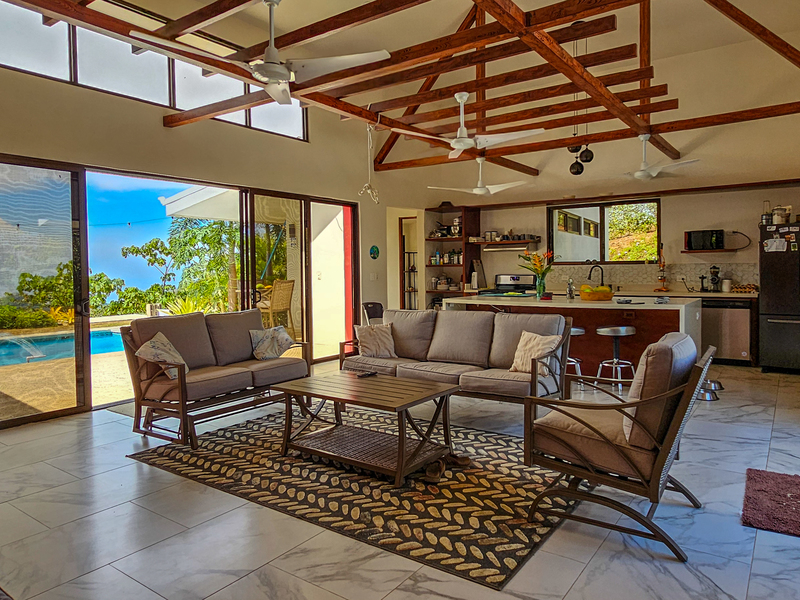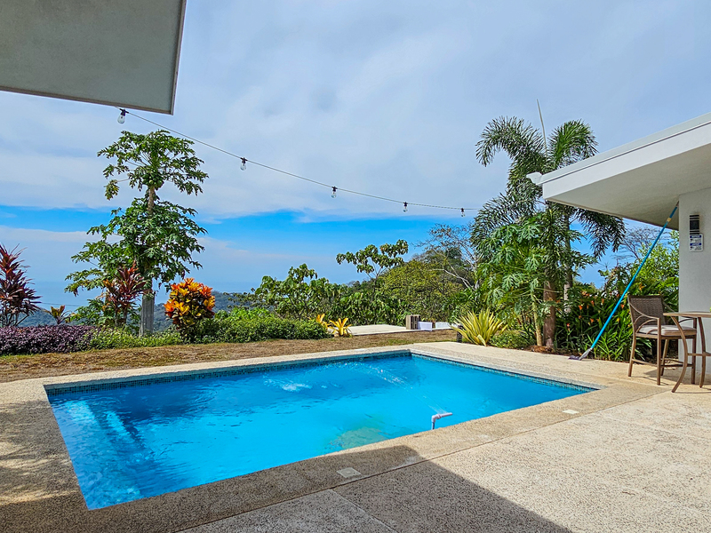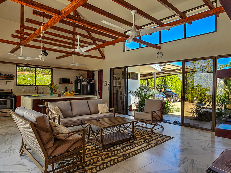 Nestled on a mountainside with spectacular ocean views toward the Nicoya Peninsula, this beautiful 3-bedroom, 2-bath modern home offers a perfect balance of style, comfort, and location. Wake up each morning to stunning sunrises over the ocean and enjoy refreshing cross breezes flowing up from the valley, keeping the home naturally cool and inviting.