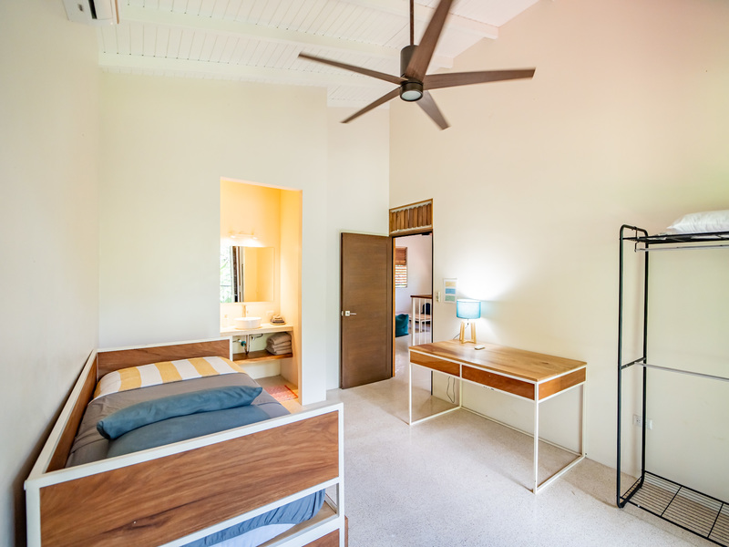 This 264 m² home offers spacious living, high-end finishes, and beautiful jungle surroundings. It features three 16 m² bedrooms, each with a private en-suite bathroom (two on the first floor, one on the ground floor). One first-floor bedroom opens onto a 25 m² balcony with jungle views, perfect for yoga or relaxation. A 25 m² second-floor mezzanine overlooks the living area and can easily be converted into a fourth bedroom or office.