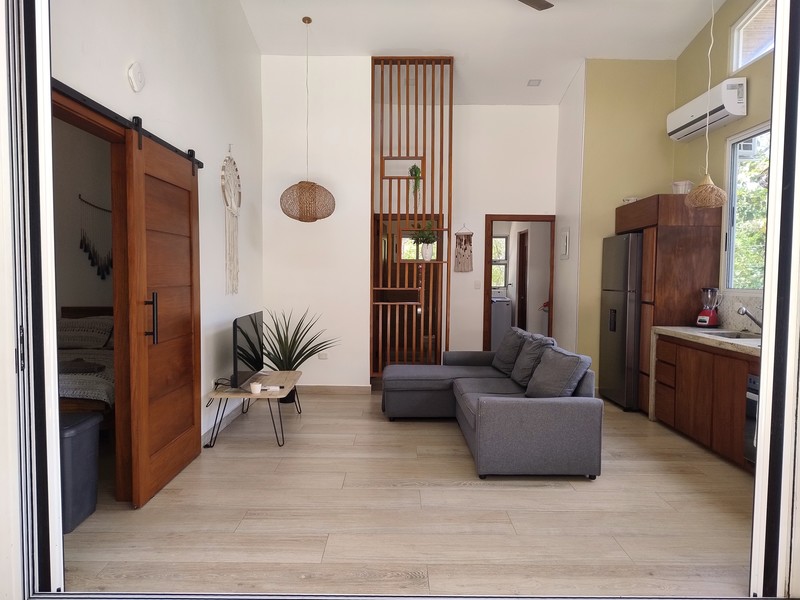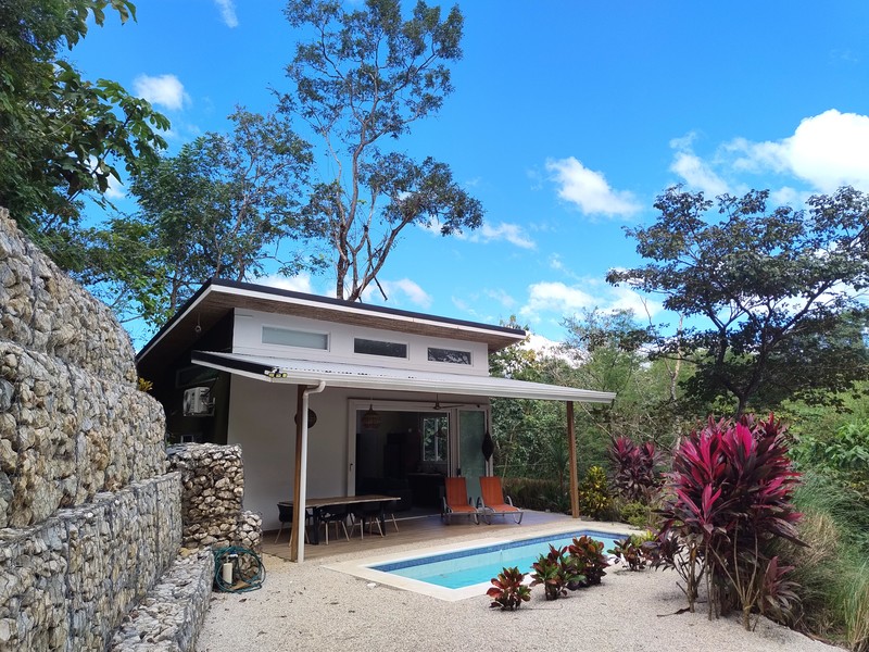 The main house features a contemporary design with clean lines and a bright, airy feel. Thoughtfully designed to maximize the views of the surrounding jungle, the open-concept layout flows effortlessly from indoors to outdoors. Relax on the expansive covered patio or take a refreshing dip in the sparkling pool, all while immersed in the beauty of nature.