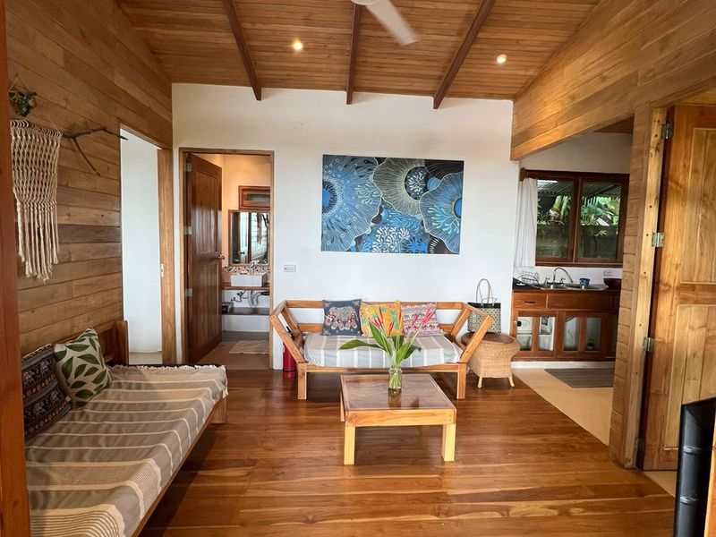 Welcome to a thoughtfully hand-crafted wooden home & guest apartment designed to evoke a sense of warmth and relaxation. This villa seamlessly blends comfort and tranquility, making it your ideal private retreat in Santa Teresa.