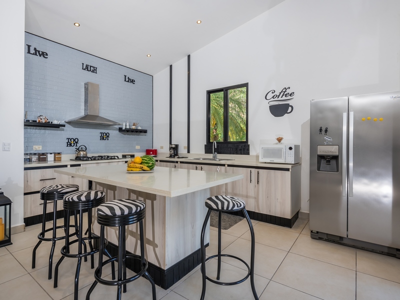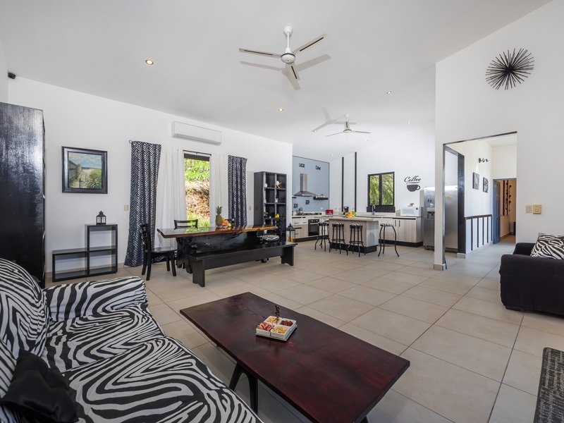 Set on a 5,057 m² lot in the Río Santos area near Tamarindo, this home is located within a private gated community offering privacy and natural surroundings.
