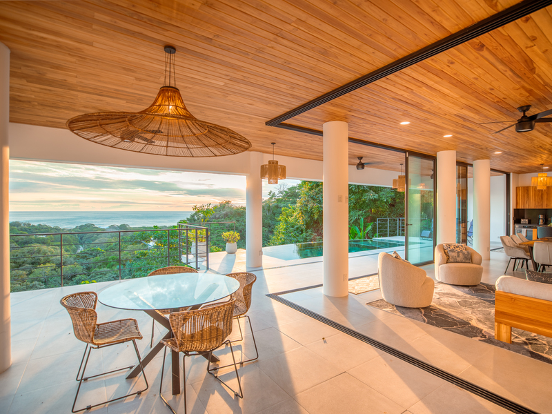 Casa Alta is perched atop a lush green hill, this newly constructed house offers breathtaking views of the ocean below. The modern design seamlessly blends with the natural surroundings, creating a harmonious fusion of luxury and wilderness. The floor-to-sealing sliding doors offer panoramic views of the ocean, allowing for a constant connection to the beauty of the surrounding landscape. The spacious outdoor deck with an infinity pool provides the perfect spot for relaxing and taking in the sunset over the water, while the interior boasts high ceilings, sleek finishes, and ample natural light. This house offers the ultimate serenity and beauty of nature just few minutes from the beach.