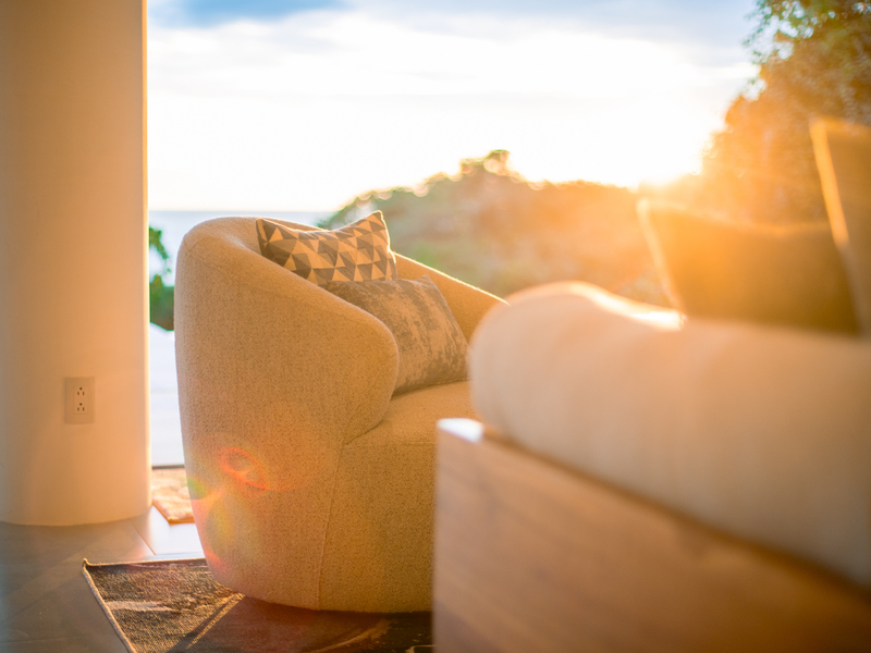 The villa emanates an atmosphere of airy spaciousness, with an open-concept design that encourages gatherings. In the state-of-the-art gourmet kitchen, you'll find a wine fridge and ice maker, complemented by custom cabinetry crafted from locally sourced wood and stone materials. Blurring the boundaries between indoor and outdoor living, expansive glass windows and sliding doors reveal a mesmerizing panorama and endless ocean expanse.