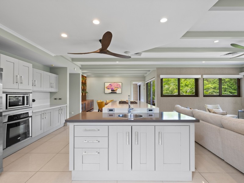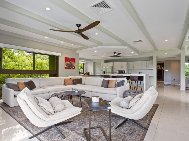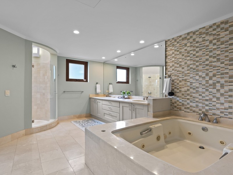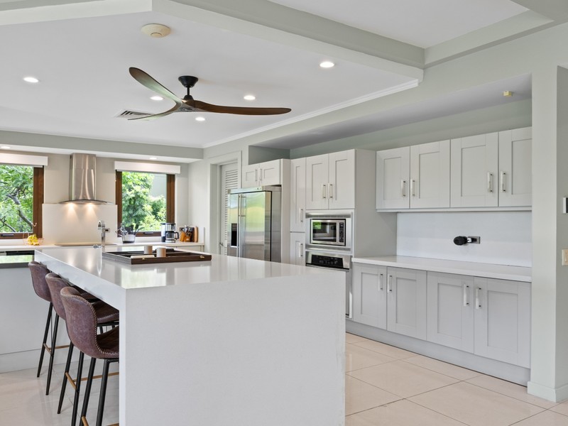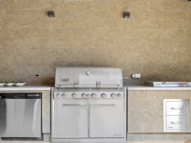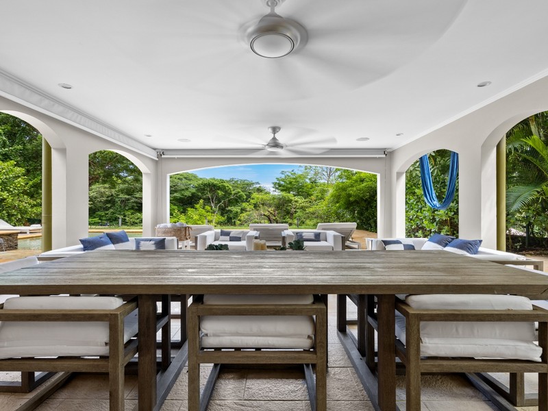 Outdoor living and entertaining are exceptional, with a custom pool and Jacuzzi surrounded by tropical landscaping, a state-of-the-art outdoor kitchen with BBQ, dishwasher, dining area, hammock, sun loungers, outdoor shower, and manicured gardens. A secondary kitchenette, full generator, electric blinds, LED lighting, and large walk-in closets add convenience and luxury throughout.